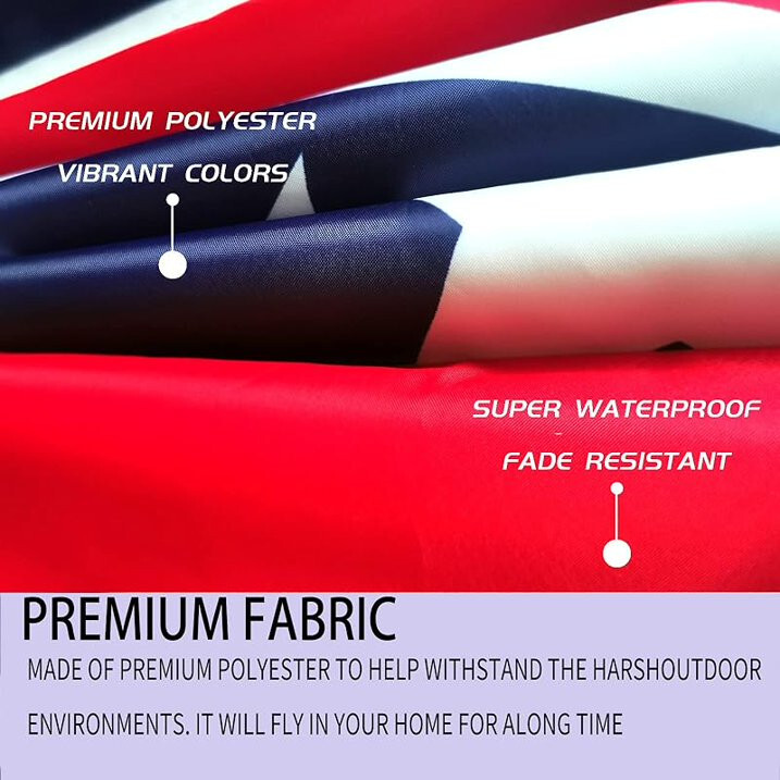 3' x 5' Super Polyester Flag with header & brass grommets BRAND NEW 3x5 foot 100% POLYESTER INDOOR/OUTDOOR FLAG. UV-RESISTANT COLOR FAST INK TO PROTECT VIBRANCY OF COLORS IN SUNLIGHT. GREAT FOR HANGING INSIDE OR FROM STANDARD FLAG POLES - LIGHTWEIGHT FABRIC WILL FLY EVEN IN GENTLE BREEZES. DOUBLE SEAM WITH 4 ROWS OF STITCHING ON FLY END FOR EXTRA DURABILITY. PREMIUM CANVAS HEADER COMPLETE WITH 2 BRASS GROMMETS FOR HOISTING. POLE NOT INCLUDED. USA SELLER, FAST SHIPPING!!!!!