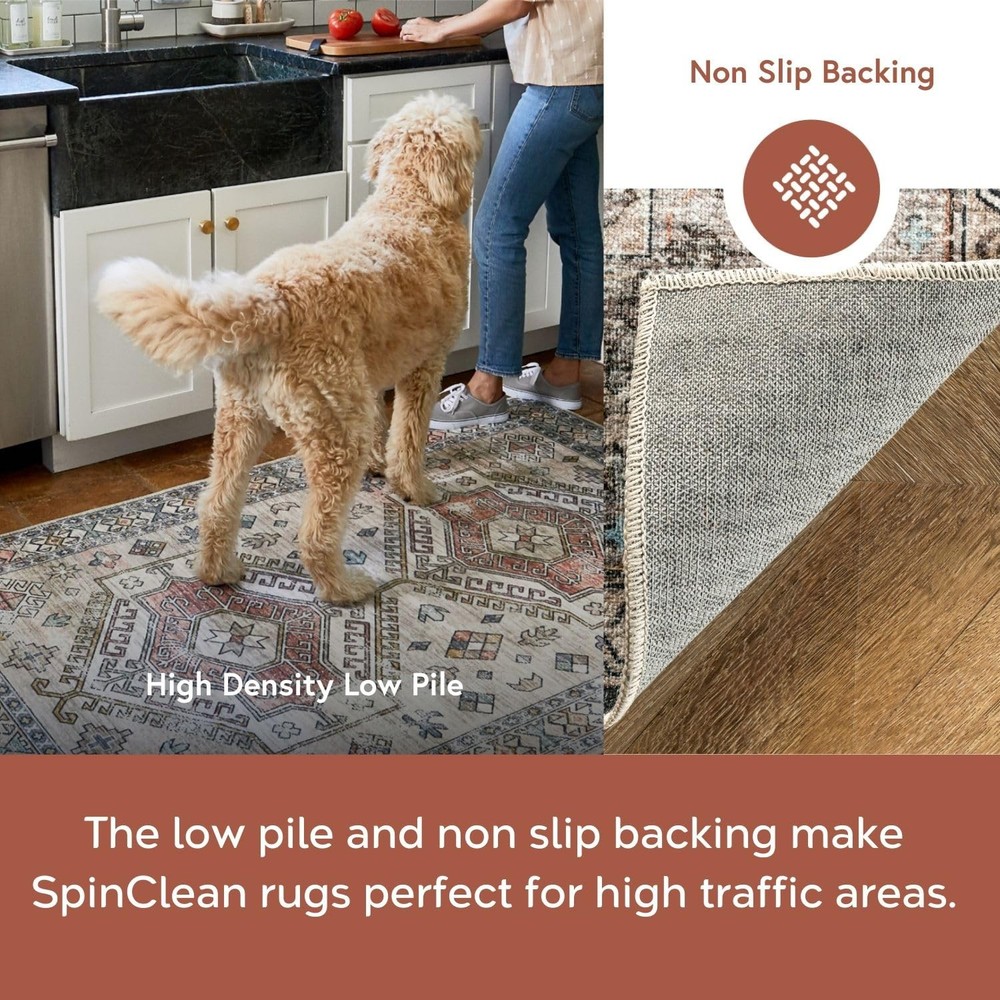 Introducing our SpinClean Machine Washable Collection, the ultimate blend of style, convenience, and practicality for any home. Designed with today's busy lifestyles in mind, this rug is more than just a beautiful addition to your space—it's a game-changer in home maintenance and comfort. SpinClean washable rugs are fully machine washable, making this a child-safe and pet-safe rug as well as the perfect high-traffic area rug. Gone are the days of worrying about spills and stains; simply place your rug in the washing machine, and it will come out looking as good as new. The ease of cleaning not only saves you time but also extends the life of your rug, ensuring that it remains a stylish feature in your home for years to come. Whether you're looking to add a pop of color with a living room rug, a touch of warmth to your bedroom, an inviting front door rug, or a functional runner for your kitchen, our collection has you covered. It’s machine washable and stain-resistant features, combined with a non-slip backing, make it an ideal choice for any home. Need a hall rug to enhance your hallway's look? Or perhaps a grey and white area rug to elevate your modern decor, these rugs offer versatility in any space. The SpinClean collection is proof that you don't have to break the bank to achieve a stylish, comfortable, and low-maintenance home environment. Stylish and Practical: The SpinClean Machine Washable Collection offers an affordable, low-maintenance solution without compromising on style. This collection features a wide array of designs, from vintage to southwestern, boho, abstract, and modern geometric. Machine Washable for Easy Care: Maintaining this rug is a breeze with regular vacuuming and spot cleaning to preserve its beauty. For tougher stains, just toss your rug in the washing machine on a gentle cycle with cold water. We recommend line drying or using the air-only drying cycle without heat. Designed for Every Room: This area rug is kid and pet-friendly, making it ideal for any space in your home that needs an elevated touch. It ensures lasting style in your living room, bedroom, dining room, kitchen, bathroom, home office, dorm room, as a hall runner or entrance rug. Sleek and Functional Pile Height: The low pile of this area rug brings a sleek, sophisticated touch while being easy to clean and maintain. Designed to be placed conveniently under furniture and doorways or as an indoor entrance rug, this is the perfect high traffic rug for your home. Stain-Resistant Material: Our machine washable rugs are crafted from synthetic materials that are stain-resistant, lightweight, and easy to clean. The stain-resistant properties ensure that the rug maintains its vibrant colors and patterns, even after enduring the demands of everyday use. If your rug is located in an area that receives direct sunlight, regularly rotate your rug to maintain its appearance. Durable Design with Non-Slip Backing: This rug’s power-loomed design is made to endure everyday wear and tear, ensuring long-lasting durability. The integrated non-slip backing keeps the rug securely in place while the reinforced, quality-stitched edges enhance its resilience. For added comfort, pair it with one of our rug pads for an extra cushioned feel underfoot.
