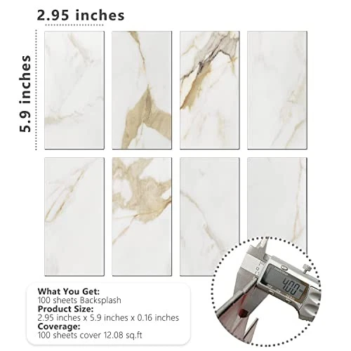 Return Policy Fast Delivery Trusted seller 100-Pieces Peel and Stick Backsplash, 3" x 6" PVC Wall Tile, Stick on Backsplash for Kitchen/Bathroom/Fireplace/Laundry Room Product Description SIZE AND COVERAGE: 100 pieces self adhesive polyvinyl chloride tiles, 5.9"x2.9"x0.12" each, cover about 12.08 square feet. Please consider cutting loss 3-5% in every DIY project. REAL TEXTURED: The design was inspired by nature, made of aluminum composite laminate, have natural appearance and realistic texture. HIGH QUALITY: Specially designed for DIY project, resistant to water and heat, anti-scratch, color fadeless. Durable PVC Material, mixed with strong backing adhesive, will permanently decorate your space. EASY DIY: Peel and stick installation, just interlock one by one. No extra glue, no grouting, without mess. Easy to cut with sharp utility knife or hand saws, save you time and money on contractor. WIDELY USE – Perfectly decorated in Kitchen island walls, bedroom walls, bathroom backsplash, laundry room, RV etc. Shipping Returns Payment Shipping Shipping is FREE to all addresses other than APO/PO boxes in the lower 48 states. All our stock ships from US-based warehouses. Shipped via USPS or UPS (depending on location and package weight) Unless stated otherwise, all orders will ship within 24-72 hours of your payment being processed. Check our feedback to see the great reviews of FAST shipping we offer. Returns Seller does not accept returns Payment We currently accept payment via eBay managed payments only. Once payment is cleared, we will dispatch your shipment within 1-3 business days. Please refer to the "Shipping" tab for more information regarding shipping speed to your destination.