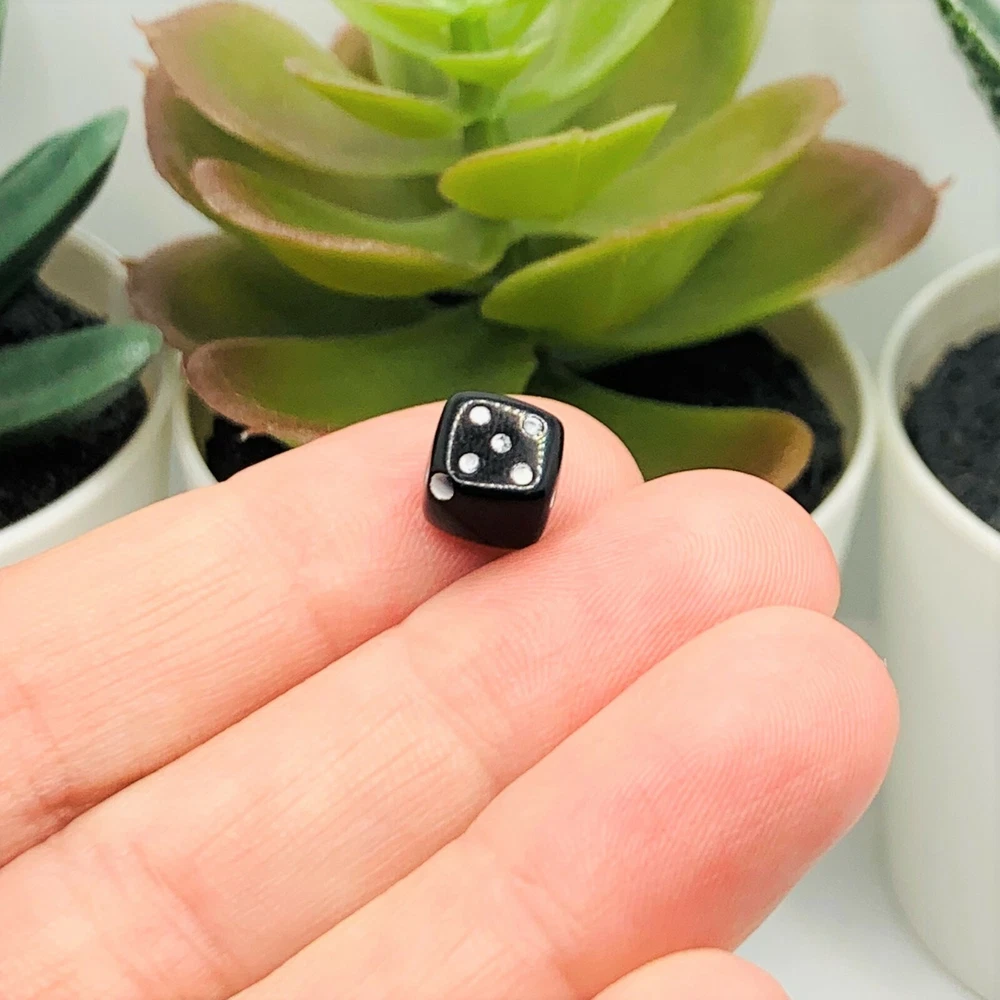 Black Dice Charms These beads are the perfect addition to any jewelry making project or as a unique accessory on their own. The 3D design of the black dice adds a fun and playful touch to any piece, while the high-quality materials ensure durability and longevity. 9 x 9 mm 1.3 mm hole Black acrylic Nickel, lead, and cadmium free! Hand-packaged to ensure only the best quality! Perfect for necklaces, bracelets, and other DIY creations! Shipping Fast and free shipping within the USA! Tracking included! All orders shipped out within 24 hours of payment (aside from holidays and weekends). Return Policy Customer satisfaction is our priority! Returns, refunds, and replacements available for all unused items within 30 days. Contact us for any questions, comments, or concerns!