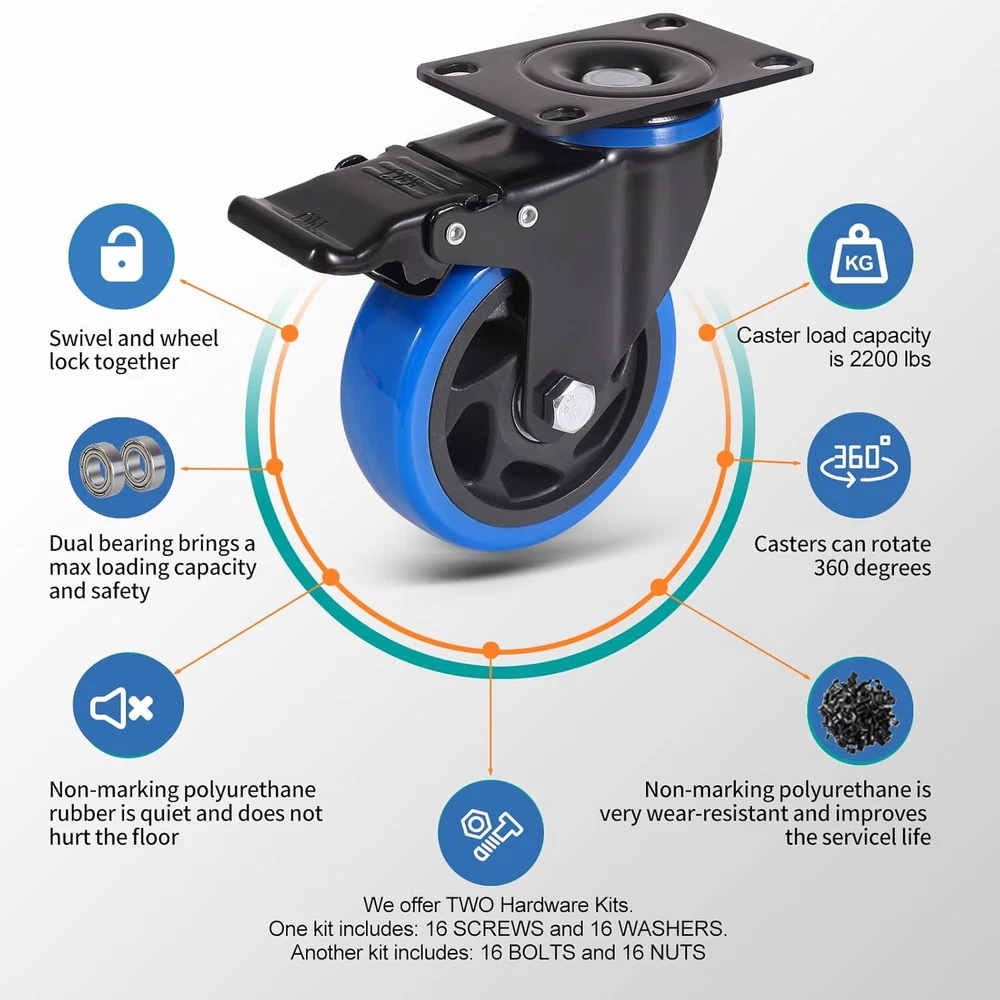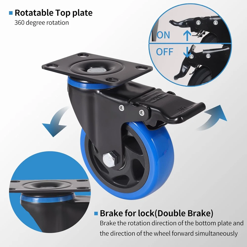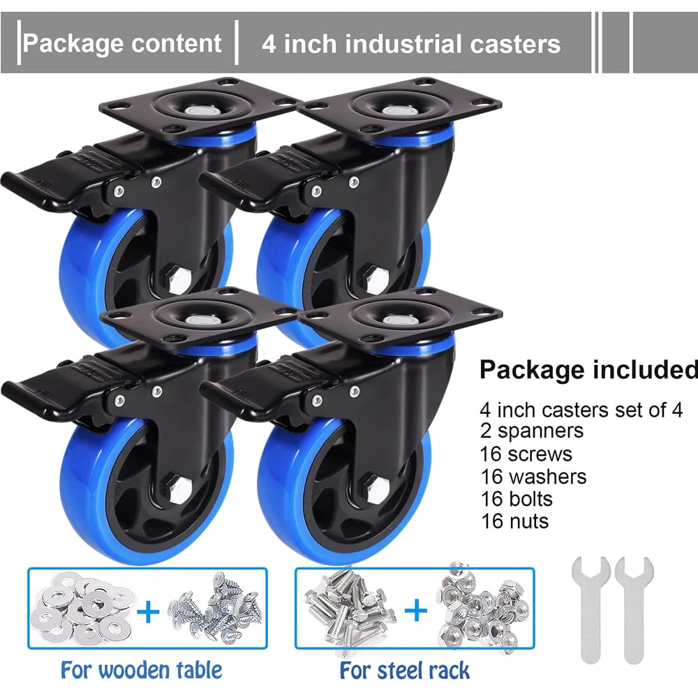 Store New Arrivals Add to Favorite View Feedback Contact 4" Caster Wheels Set of 4, Heavy Duty Casters with Brake, Safety Dual Locking Casters, No Noise Wheels with Polyurethane Foam, Load 2200LBS (Two Hardware Kits for Free) Description Item model number HDCC007 Style 4 inch Color Blue,Black Material Alloy Steel Country of Origin China Item Weight 3.84 Kilograms Pattern Name Blue Wheel Diameter 4 Inches Package Dimensions 11.14 x 10.2 x 2.68 inches; 8.45 Pounds Manufacturer casters 【STURDY CONSTRUCTION & HEAVY DUTY】These casters set of 4 heavy duty are with premium thickened steel housing, thickened top plate and each caster wheels has double support bearings. Total loading capacity is up to 2200lbs, each wheel can carry 550lbs, spend little strength to move on. 【DOUBLE SAFETY BRAKE】The 4 inch casters are 360-degree rotating, also each swivel caster has a separate brake which locks both the wheel and the swivel simultaneously. When brake of wheel casters is pressed down, holding the equipment firmly in place, effective to stop and prevent the devices from moving and hurting others. 【SMOOTH & NON-MARKING】The locking casters set of 4 are made of superior polyurethane material, wear-proof, reducing vibration, achieve smooth, quiet, and no drag marks gliding experience on various flooring types, especially on uneven surface. What’s more, every castor wheel has dust-proof ring will improve the casters 4 inch performance by preventing dust coming into the bearings. 【WIDE APPLICATION】The casters set of 4 are ideal for furniture wheels, cartwheels. The heavy duty design make them powerful to be used as rolling workbench casters, industrial casters, heavy duty casters, wheels for cart, DIY caster wheels for furniture, make living-room table with wheels, add furniture casters for easy moving. Casters heavy duty are also useful in industrial and hospital settings. 【TWO HARDWARE KITS & EASY INSTALLATION】For the convenience of the customer to install,we prepare two hardware kits for each package of caster wheels heavy duty. They are included 4 swivel casters, 2 spanners, 16 screws, 16 washers, 16 bolts and 16 nuts, suitable for two different ways. ENYKE is sincerely to serve for our every precious customer to make you pleased. Product Description 1 Double Ball Bearings 2 Dust Proof Gasket 3 Riveting Process Wide Applications The video showcases the product in use. The video guides you through product setup. The video compares multiple products. The video shows the product being unpacked. Locking Casters Set of 4 Specification Provide various sizes for choices. Spare Parts for Per Set Instantly install when received. Top Plate Dimensions Top plates for 2-6" casters are the same size. Please make sure the project you are installing has enough space to install our top plate. More Selections Add to Cart Add to Cart Add to Cart Add to Cart Add to Cart Add to Cart Customer Reviews 4.5 out of 5 stars 778 4.8 out of 5 stars 362 4.5 out of 5 stars 778 4.5 out of 5 stars 778 4.6 out of 5 stars 1,628 4.8 out of 5 stars 362 Price $26.49 $ 26 . 49 $23.49 $ 23 . 49 $49.99 $ 49 . 99 $32.99 $ 32 . 99 $12.99 $ 12 . 99 $54.99 $ 54 . 99 Max Bearing (lbs) 2200 1000 2800 2400 80 2800 Qty/Set (pcs) 4 4 4 4 4 4 Weight (lbs) 8.47 7.6 12.08 9.88 1.04 12.08 Total Height (inch) 5.11 4.53 7.07 6.1 2.2 7.07 Material Polyurathane, Alloy Steel Polyurathane, Alloy Steel Polyurathane, Alloy Steel Polyurathane, Alloy Steel Polypropylene, Brass, Steel Polyurathane, Alloy Steel ABOUT US We offer the best prices around on high quality products. Our E-store includes media such as books, movies, music and games while offering electronics, toys, sporting apparel, clothing, tools, general home, garden items and more. SHIPPING We are always working hard to ensure your package arrives as soon as possible. Please understand that some factors like weather, high postal traffic, and the performance of shipping companies are outside of our control. We offer free shipping to the lower 48 states and ship within 2 business days of payment, usually sooner. We do not accept P.O. Boxes. Please provide a physical address. For shipping outside of the continental USA, we only use eBay's Global Shipping Program.The item is shipped to KY and then sent to the rest of the world. International customers are responsible for all duties and taxes. Continue to check out in order to calculate costs for shipping the item to your country. Messages regarding eBay's Global Shipping Program MUST be directed at eBay EXCLUSIVELY. RETURNS We offer a 30-Day Return Policy on items which you are not completely satisfied with. You have the option for a full-refund or an exchange of the item. No returns are available on items shipped outside of the USA. PAYMENT We accept PayPal. CONTACT US This page content is yet to come Please ad us to your favorite seller and visit again later Thank You CUSTOMER SATISFACTION We try our very best to make sure every customer is completely satisfied. If there's a problem, message us! We're happy to help. WE ACCEPT Copyright © 2021 AutoDS. | All Rights Reserved