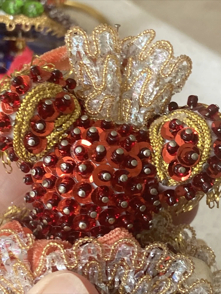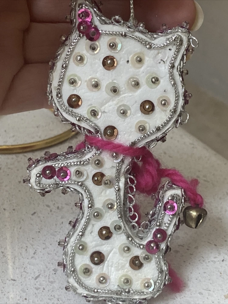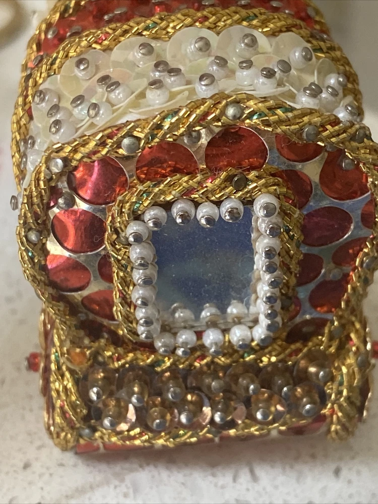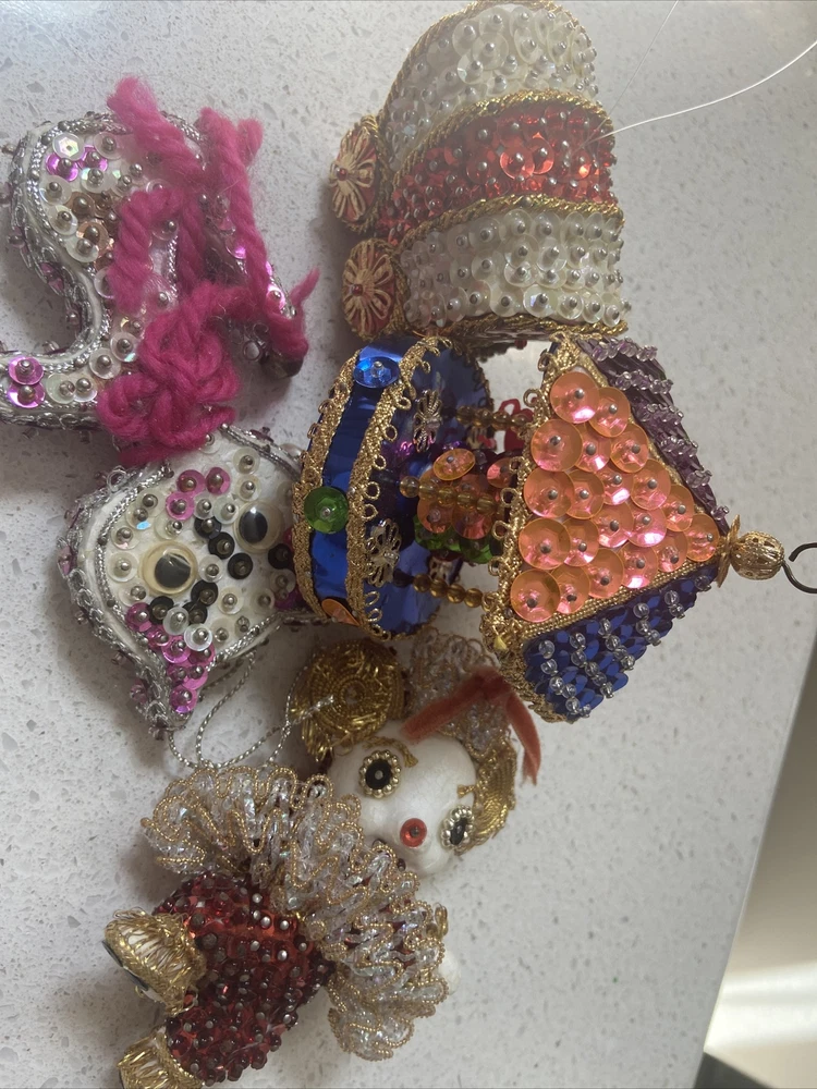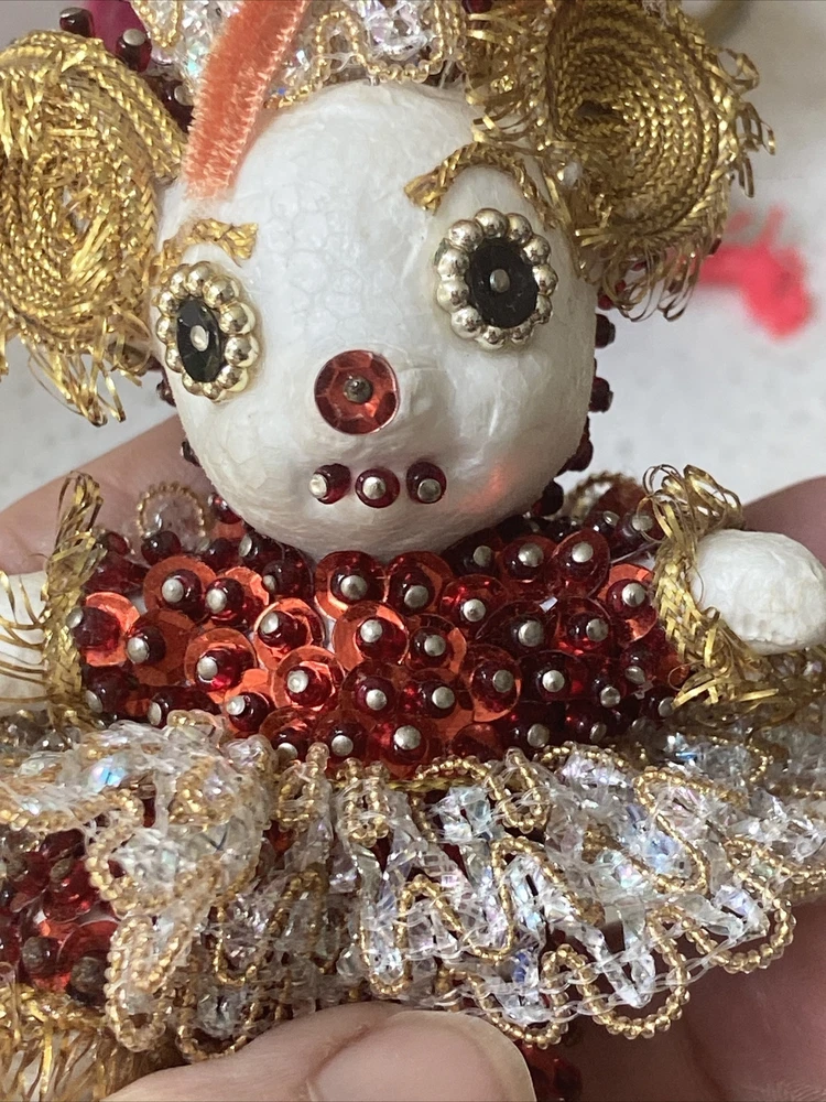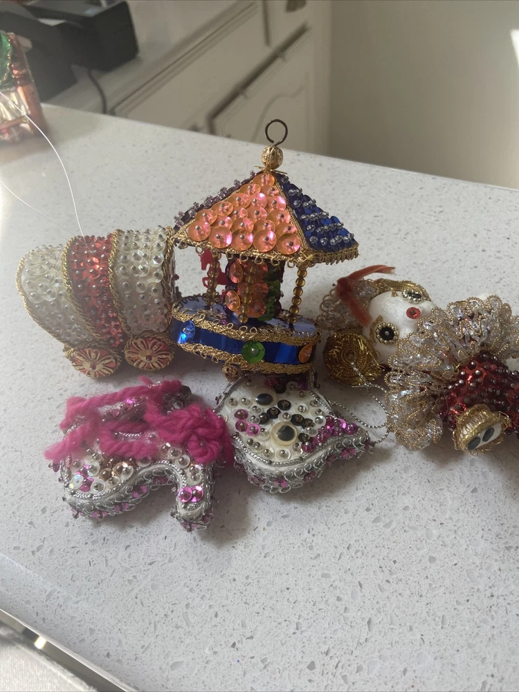 Christmas Beaded Sequin And Push Pin Ornaments Handmade Lot Of 4. For really cute ornaments I especially love the bear that is my favorite. The detail on this beautiful little ornament is incredible. They are a mixed lot sold as is they are in vintage condition. Please note the carousel the two pink horses need to be glued back on, and it will still be missing one of them back in the day they were for now we’re down to one with two that need to be reattached.