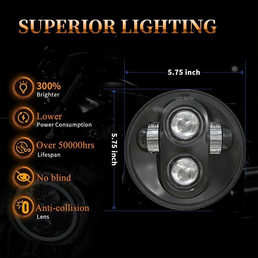 Description: * Type:5.75" 5-3/4" LED Headlight * Beam Type:High Low Beam * Shape:Round * Watt: 45W * Lumens:4000LM//High Beam,2600LM/Low Beam * Lamp Type:LED * Certification:CE, IP67,RoHs,DOT,SAE,EMARK * Housing Material:Die-Casting Aluminum * Lens Material:PC Lens * Working Voltage:12-30V DC * Color Temperature: 6000K * Two Modes: High Beam-All LEDs on,Top and two side LEDs on * Working Life:More than 50000hours * Working Temperature:-40~ 80 Degree * Plug Mode: H4 (directly replace all 3 prong lights, if your plug is not H4 mode, you will need a plug adapter) Features: * Aftermarket 5.75" round sealed-beam LED projector headlight. * Solid-state component,can withstand driving vibration & shock with ease. * High performance Hi-Lo beam,innovative projector lens+ D-shaped lens. * Super bright but softer light on road,efficiently relieve driving fatigue. * IP 67 rated Construction,with exhaust hole to avoid inside fog/moisture build-up. * Full aluminum housing for extra durability while doubling as heat sink. * Low beam pattern-provides a wide pool of general lighting and remain illuminated all the time. * High beam pattern-add focused light from lower section to add punch down the middle of road. Package including: * 4x 5.75inch LED Headlights Payment Shipping Returns Contact us Feedback Payment Payment methods : Payment is expected within 7 days of auction close. Unpaid Items will be forfeited per eBay . Immediate payment needs to be processed for items with Add to Cart option so that any promotional discounts can be applied to your order immediately. International Buyers – Please Note: a) Import duties, taxes and charges are not included in the item price or shipping charges. These charges are the buyer's responsibility. b) Please check with your country’s customs office to determine what these additional costs will be prior to bidding /bu ying. Shipping 1.All items will be shipped to your eBay Address .Please update your latest address when you check out,and please make sure to provide us with correct,precise and detailed shipping address. 2.If your shipping address and the item location both are US, it will be shipped by USPS or UPS. All items will ship within 1-2 business days after the we receiving clear payment. 3.Service transit time is provided by the carrier. Transit times may be a little delayed during holiday season. 4.International order will be sent from China within 3 business day after the we receiving clear payment. ---For International Orders. Both are the same products and same warranty. Duties and taxes may apply. Please check with your country's custom and eBay policy for more information. 5.Where is my tracking number? Please log on your account, click "my eBay"-->"my summary", or open your email box and find the shipping notification email. Returns Our 30 days Satisfaction Guarantee assures our customers that they will receive all orders promptly and exactly as described. In addition, we offer FREE RETURNS for US buyers. It allows customers to return faulty and unused products for any reason within 30 days from the date of purchase. *Please contact us first before you sent a return request* The seller is responsible for all return shipping, including those due to customer errors or defective items. 1) If you receive an item that is incorrect, damaged, defective or not as described, please contact us for a partial/full refund or replacement. 2) If you want to return the item, please contact us within 30 days after receiving the package. 3) If you open a return request ,please select the reason for return: Doesn't fit/Changed my mind/Just didn't like it/Order by mistake. 4) We provide the 1 year of product warranty. If your product have quality problem within the warranty period, please contact us to provide repair or replacement services to you. Note: Return products must also be in its original condition: including box, packaging and all other accessories Contact us Our Working Time:(GMT+8)Monday to Friday,9:00-18:00. Have Question or Problem? Please contact us first! 1. We will reply you within 24 hours once we receive your email during business days. There will be some delay on response if you send message or E-Mail on weekend. 2. Describe your question clearly. We have a very professional and attentive customer support team. We will give you the best solution by our great communications. 3. We have always been trying to provide the best service and reliable product for every customer. However, sometimes may happen accident. Please contact us solve any issue before leaving a negative feedback. Feedback 1.We appreciate your business and strive to improve our customer service and our commitment to quality. 2.We will leave a positive feedback immediately after payment is received. We appreciate a positive feedback as much as you do. 3.If for some reason there is any issue with the purchase, please contact us prior to leaving feedback, and we will be glad to work with you to have it resolved.
