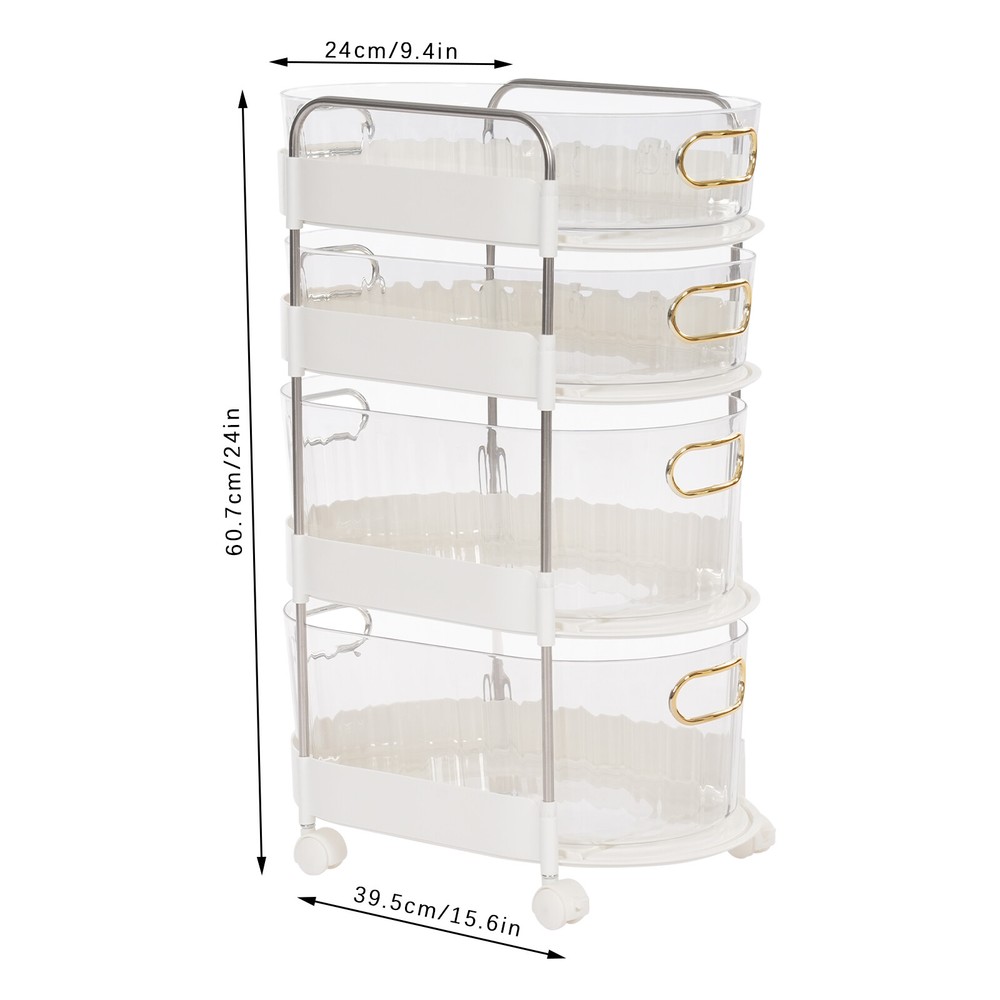4 Drawer Plastic Storage Organizer Container Storage Rolling Cart For Bedroom 4 Drawer Plastic Storage Organizer Container Storage Rolling Cart For Bedroom Application This Product Can Be Used in Living Rooms, Bedrooms, Study Rooms, Offices, Dormitories, Schools, and Other Places. It Can Be Used to Store Cosmetics, Files, Books, Letters, Papers, Magazines, Tea Bags, Sugar Packets, Necklaces, Earrings, Bracelets, Rings, Perfumes, Lipsticks, Household Medications, Herbs, Nutrition-related Capsules, and Other Items. Specifications Style: Modern Color: White, Clear Material: Pp, Pet, S teel Tube Process: Injection Moulding , Gilded Number of Drawers: 4 Mount Type: Freestanding Assembly Required: Yes Number of Wheels: 4 (2 with Brakes) Each Large Drawer Size: 39.5*22*14cm/ 15.6 * 8.66 * 5.51 inch Each Small Drawer Size: 39.5*22*8.5cm/ 15.6 * 8.66 * 3.35 inch Overall Product Size: 39.5*24*60.7cm/ 15.6 * 9.4 * 24 inch Package Size: 41*26.5*31cm/ 16.14 * 10.43 * 12.2 inch Gross Weight: 3.4kg/ 7.49 lbs Net Weight: 3kg/ 6.61 lbs Package Included 1* 4-Drawer Storage Rolling Cart 4* U niversal Wheels 4*Hooks All Accessories for Installation Description This 4-Drawer Storage Rolling Cart Is Both Stylish and Practical. It Is Designed to Make Full Use of Space and Achieves Fine Classification Storage to Make Your Life and Work More Orderly. the Modern Style Shows an Exquisite Charm, Which Can Express a Refined Sense of Fashion. This Product Has a Small Footprint and Lots of Storage Space, Making Your Life More Organized and Tidy, Get It Now! Key Features High-quality Material: the Product Is Made of Pp, Pet, and Steel Tube, with an Injection Molding Process, Which Has High Strength, Good Corrosion Resistance and Rust-resistant , Moisture-proof Performance, and Can Be Used for the Long Term. Modern Appearance: the Pleasing White and Clear Color, Rectangular Structure, and Smooth Lines Add Beauty and Exquisite Elements to Your Room. It Plays a Unique Decorative Role While Using, Bringing an Exquisite Charm into Your Home. Large Capacity: It Includes 2 Small Drawers (Each: 15.6*8.66*3.35inch) and 2 Large Drawers (Each:15.6*8.66*5.51inch), Which Are Enough to Easily Store Jewelry, Cosmetics, Documents, and Other Small Items, Making Your Room Cleaner. the Raised Design Makes It Easy to Store Large Bottles of Cosmetics As Well. Excellent Load-bearing Capacity: Thanks to Its Thickened Material and Rectangular Structure, This Product Has Excellent Load-bearing Capacity , so You Can Use It with Confidence. Easy to Move & Fix: Four Universal Wheels (Two with Brakes) Make the Whole Product Easily Moved from One Place to Another and Can Be Fixed at Will, Greatly Enhancing Efficiency and Convenience. Space-saving: It Occupies a Small Area (15.6*9.4 Inches) and the 4-Tier Design Uses Vertical Space Rationally, so You Get More Space to Store Items Without Taking up Too Much Desk Spac e. Thoughtful Design: the Clear and Visual Appearance Allows You to Find the Contents Easily and Quickly. Convenient to Use: the Gilded Hollow-out Handle on Each Drawer Makes It Easier to Pull out and Close the Drawer, Which Not Only Provides Convenience but Also Enhances the Aesthetics of the Entire Product. Multi-function: Each Tier of Drawer Can Be Pulled out Completely , so You Can Use It Separately to Store Items Independently, Ensuring That It Suitable for Different Usage Scenarios. Easy to Clean: with a Smooth Surface and Detachable Drawers, It Is Very Easy to Clean with a Damp Cloth (Not Included). Ideal Gift: with a Delicate Outlook and Practical Storage Function, It Is a Wonderful Housewarming, Wedding, or Festival Gift for Your Families, Friends, or Colleagues. Details 4 Hooks: They Can Be Used to Hang Small Objects, Such As Keys, Leather Straps, Bracelets, and Pendants for Your Convenience. Smooth Edges: Smooth and Burr-free Edges No t Only Increase the Beauty of the Product but Also Improve the Safety of Use. Notes Please Check the Quantity Carefully After Receiving the Product. Please Note That This Product Does Not Include Other Items Shown in the Picture. Please Allow the Slight Color Difference Caused by the Shooting Light and 1-3cm Error Due to Manual Measurement, and Make Sure You Do Not Mind Before You Order. Payment Delivery details Terms of sales About us Contact us Payment We accept ebay payment 。 Fees such as import duties, taxes are not included in the item price or shipping costs. These charges are the buyer's responsibility. Delivery details Shipping: 2-9 working days to: USA Terms of sales We maintain high standards of excellence and strive for hundred percent customer satisfaction. Feedback is very important to us. We hope that you contact us immediately before you give neutral or negative feedback, so that we can address your concerns. It is impossible to address issues if we do not know about them! About us Your satis faction is our ultimate goal. We work hard to earn your trust and future business. Our certified technicians have tested each item before shipping. The unit comes with 1 year limited warranty on all manufacturing defects. a) If you receive a defective item, you may return it or ask for a discount. Please contact us within 14 days after you receive the package. b) What you returned must be intact and in its original packaging as re? u. Customer is responsible for shipping costs of the returned item. c) We will cover the cost of shipping back t with the shipping rate indicated in the registration page. We will send you a new unit or refund the full payment you paid. Thank you. Contact us Business Hour Business Hour: Monday To Friday: 8:30 AM to 5:00 PM (Beijing China time) Due to time zones, our reply to your questions may not be immediately. But within above working time, we will reply your email within 24 hours. If it's non-workdays, please kindly be patient and wait till Monday. Please contact us with ebay message. Please feel free to contact us if you have any questions. Monday To Friday: 