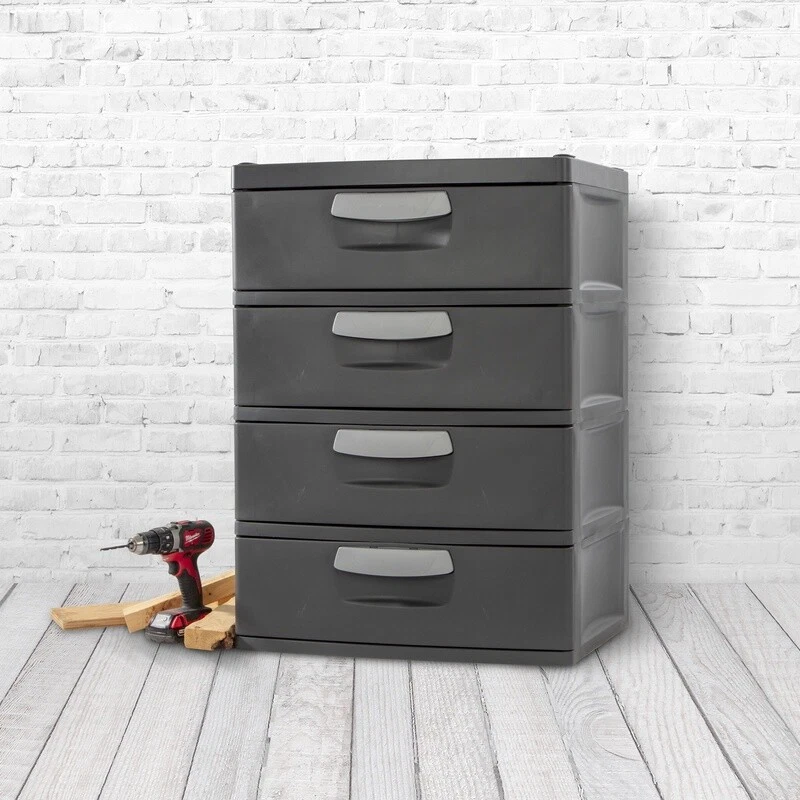 2 pack 5'x7' Green Artificial Faux Grass Outdoor Rug Pet Friendly Area Rug NEW 83.53 USD Free shipping 4PC Square Wall Mount Towel Holder Bath Chrome Hardware Set Easy Install New 31.08 USD Free shipping 40lb Adjustable Dumbbell Set Cast Iron Weight Plates Home Gym Fitness Equipment 64.37 USD 69.21 USD Free shipping 7% off Adjustable 55 lb Barbell Dumbbell Set Strength Training Home Gym Workout New 66.56 USD 71.57 USD Free shipping 7% off Heavy Duty 5-Shelf Boltless & Adjustable Steel Storage Shelf Unit Silver 4 Pack 189.54 USD 203.81 USD Free shipping 7% off 4PCS 10 Cup Glass Storage Containers Airtight Lids Stackable Box Dishwasher Safe 48.73 USD 52.4 USD Free shipping 7% off 3-Door TV Stand Console TVs Up to 50in W/ Open Shelves & Storage Drawers New 120.96 USD 130.06 USD Free shipping 7% off Rechargeable Foot File Dual Speed Exfoliator Dead Skin Remover Diamond Roller US 50.18 USD Free shipping Ugly Stik Catfish Fishing Rod Reel Combo 7ft Medium Heavy Durable Spinning Rod 62.14 USD 66.82 USD Free shipping 7% off Lattice High Back Slat Seat Steel Outdoor Garden Bench Black Patio Bench Seats 2 85.45 USD 91.88 USD Free shipping 7% off Single Drawer Nightstand End Table Storage Cubby Accent Table Solid Wood New 76.38 USD 82.13 USD Free shipping 7% off 4-Shelf Steel Storage Rack Heavy Duty Adjustable Utility Shelf Organizing Unit 65.47 USD 70.4 USD Free shipping 7% off Organize with ease! The durability, modularity, and simplicity of ’s versatile 4 Drawer Unit makes it the ideal solution for basements, attics and garages. The trend forward color is both sleek and refined and complements a variety of living areas, offering additional storage options for pantries, utility /laundry areas, bedroom/dorms and mudrooms. The large-capacity drawers glide smoothly on hidden rollers, even under a heavy load, while the wide ergonomic comfort grip handles make opening and closing the drawers easy. The solid side walls offer strength and durability, while also concealing contents for a neat appearance. Drawer stops are used to prevent drawers from being removed accidentally. Heavy duty plastic will not dent, chip, peel or rust, ideal in a challenging environment. Create a custom storage solution with other Hardware items, such as the 5 Shelf Shelving Unit, 4 Shelf Shelving Unit, and 4 Shelf Cabinet. The overall assembled dimensions of this item are 35 3/4" H x 25 5/8" W x 19 1/4" D. Plastic 4 Drawer Unit Adult Dk Gray Outside Dimensions: 25 5/8" x 19 1/4" x 35 3/4" Ideal organizational solution for garages, basements and throughout the home Large-capacity drawers glide smoothly on hidden rollers Solid sided walls offer strength and durability Drawer stops included to prevent drawers from being removed accidentally Will not dent, chip, peel or rust BPA-free and phthalate-free You may also like 18-PACK 48-in Peel and Stick Above Ground Pool Cove Swimming Pools Wall Foam 51.04 USD 54.88 USD Free shipping 7% off Oversized Director Chair with Side Table Heavy Duty Outdoor Camping Chair Green 50.09 USD 53.86 USD Free shipping 7% off Real Beef, Pea & Brown Rice Recipe Dry Dog Food 14 lb. Bag w/Added Vitamins US 27.26 USD 29.31 USD Free shipping 7% off 40lb Adjustable Dumbbell Set Weight Dumbbells Hand Weights Plates Home Gym Black 61.26 USD 65.87 USD Free shipping 7% off Distressed 5 Gun Wall Rack w/Shelf Hunt Rifle Shotgun Storage Wall Mount Display 41.82 USD 44.97 USD Free shipping 7% off 200-Qt Latching Rolling Clear Plastic Storage Tote Bin Container Boxes Set of 2 111.44 USD 119.83 USD Free shipping 7% off 15x6.00-6 Pneumatic Replacement Front Tire &Wheel Assembly for John Deere Mower 61.99 USD Free shipping Werewolf Animatronic with Lights and Scary Sound Scarecrow Outdoor Prop NEW US 111.49 USD 119.88 USD Free shipping 7% off Modern Barrel Accent Arm Chair Single Sofa Living Room Lounge Chair Gray Velvet 112.6 USD 121.08 USD Free shipping 7% off Modern Industrial Coffee Table Walnut Center Living Room Coffee Table Livingroom 34.62 USD 37.23 USD Free shipping 7% off 5-Foot Fold-In-Half Table Indoor Outdoor Picnic Party Camping Dining Table Gray 50.09 USD 53.86 USD Free shipping 7% off Round Enameled Wood Toilet Seat w/Lid Black Easy To Install &Clean Never Loosen 33.12 USD 35.61 USD Free shipping 7% off