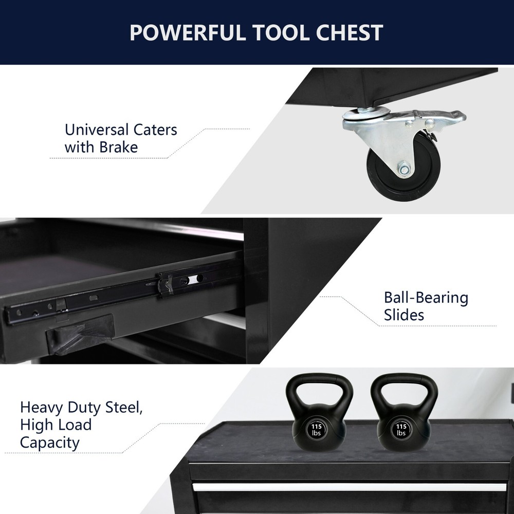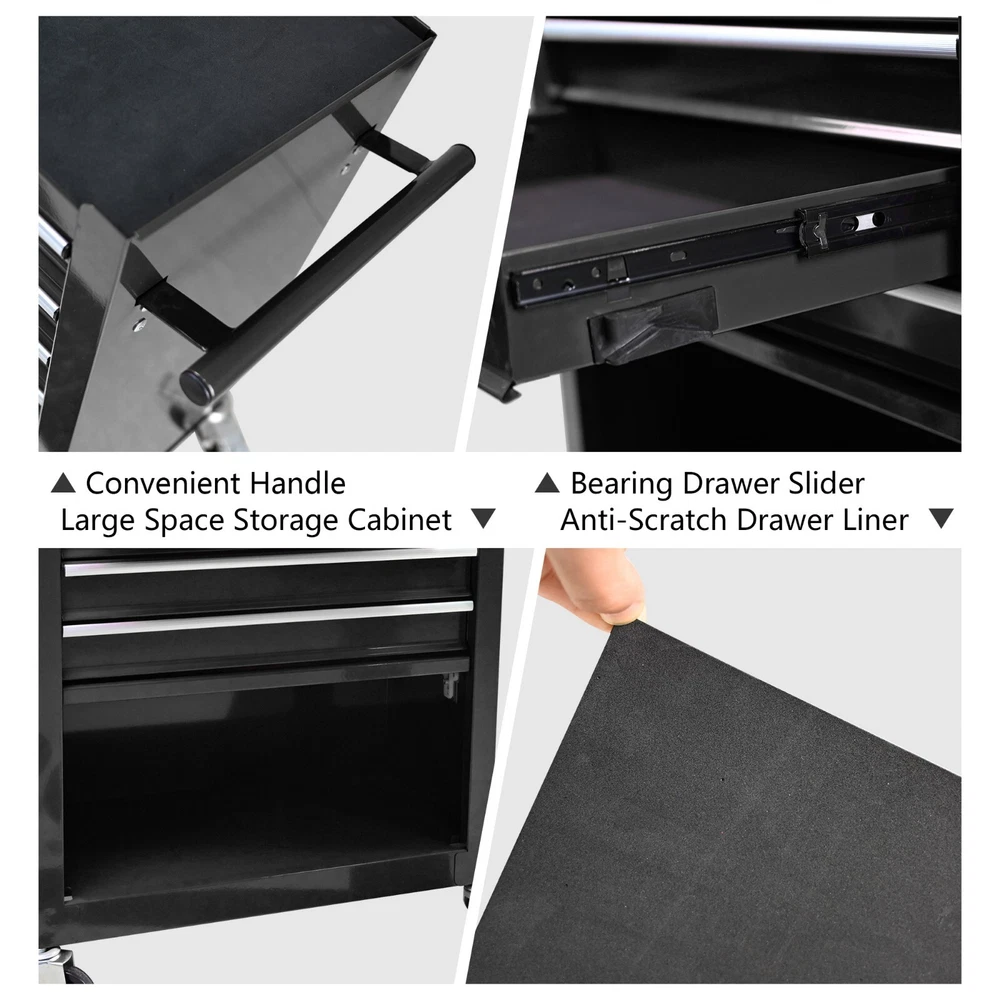 About this item: The mobile workshop trolley impresses with 4 drawers tool set The ARTMAN tool trolley is equipped with a total of 4 drawers and a large storage space on bottom. The tool trolley have interlock safe system(each time can only open one drawer.)The tool box is also lockable and can be used as a removable, attachable and mobile case attachment The opening and closing of the drawers of the tool cabinet is very gentle thanks to the ball-bearing drawers. The robust and powder-coated steel construction is used for high wear resistance. This assembly trolley has 4 steering wheels, 2 of which with parking brakes, so you can move the trolley freely in the garage, but also stop in one place Specification: Color:Red / Black / Blue Material: Cold Rolled Steel Surface Finish: Powder Coating Bottom Dimension: L616mm(24.25inch)*W330mm(13inch)*H745mm(29.33inch) Drawers Dimension: L511mm(20.11inch)*W304mm(12inch)*H85mm(3.34inch) Bottom space Dimension: L610mm(24inch)*W330mm(13inch)*H360mm(14.17inch) Weight (lbs): 41.90 Package Content: 1× 4 drawers Workshop tool tool 1× Manual