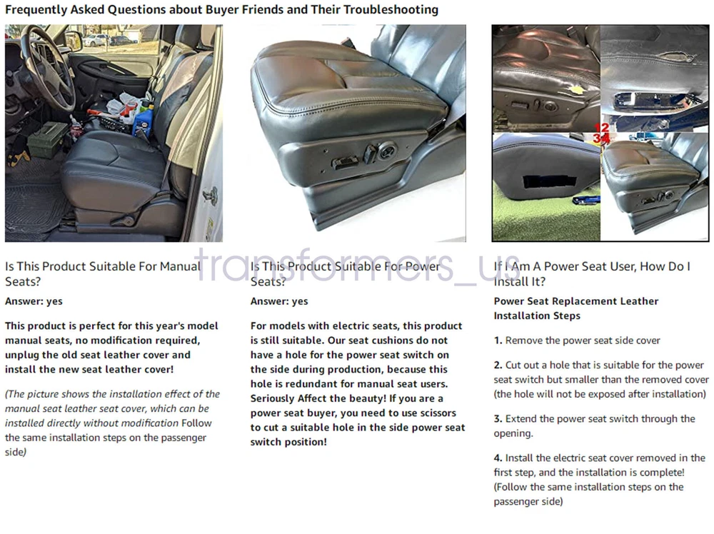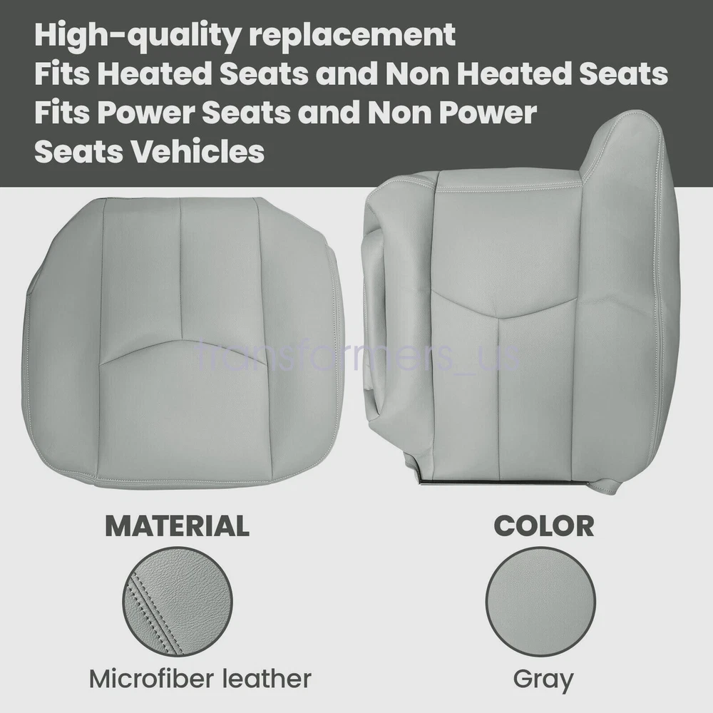 4 Driver & Passenger Leather Seat Cover For 2003-2006 GMC Yukon Sierra Gray 922 Description: Type: Replacement Side: Front Driver & Passenger Side Material: Microfiber Leather Color: 922 or 92i Pewter Gray Make: Chevy/GMC Model: Tahoe, Suburban, Silverado, Avalanche, Sierra & Yukon Fit Years: 2003 2004 2005 2006 This item is a new Custom-made, replacement in " Pewter Gray " Color for: 2003 2004 2005 2006 Chevy/GMC Tahoe, Suburban, Silverado, Avalanche, Sierra & Yukon Heated Seats: Fits Heated Seats and Non Heated Seats Power Seats: Fits Power Seats and Non Power Seats Vehicles Seat Cover's Attached Padding: ½ Inch attached foam padding Warranty: 5 Years Package Including: 1 Set Driver & Passenger Replacement Leather Seat Cover (2x Bottom Seat Cover & 2x Back Seat Cover) If you do not know how to install, please contact us,We can provide video installation instructions Tips: This Driver & Passenger Replacement Bottom & Back seat cover, built to factory specs with Quality Microfiber Leather to match the Interior of your vehicle! Our product is exactly the same as your existing cover and guaranteed to fit perfectly on your seat foam Pad. Any wrinkles seen in the pictures is from being in a box and guaranteed to disappear once installed Correctly. Please note this item is a replacement, not a slip on or pull over. Please Note: Actual Replacement Cover. NOT A SLIP ON or PULLOVER. You will remove the old cover & then install the New Cover. Communication is the best way to solve the problem. If you have any problems after purchasing, please contact us in time, before opening return or case. General Policies : Dear customer,if you have any questions,you can contact us,we will provide the best service for you. Shipping policy : The item will be shipped within 24 hours on payment received except the holidays.(except weekends & official holidays). You can log on to eBay to check your logistics tracking number. Please confirm address before purchase, and cannot change address once purchased. If you need to receive the item quickly, please contact us, you can pay the postage to choose other logistics. Payment: Please purchase and pay for the item through the eBay,only accpected the paypal payment. Returns: Please contact us first when return, exchange and refund is required. Any direct return of purchased items will not be processed. Item must be returned in new condition, as received with all accompanied accessories and literature, including the factory carton. Shipping, handling is not refundable unless item is returned because of defect. If the product is defective or damage upon arrival,please contact us immediately,we will provide the solve the problem. Returns accepted within 30 days of delivery date and item must be in new condition. About us: Our goal is complete customer satisfaction. We will be very honored to provide you with quality service. If there is an issue with shipping or the item you purchased please contact us via ebay message or call us before opening a case or leaving feedback.We will try our best to resolve any kind of issue. 4 Driver & Passenger Leather Seat Cover For 2003-2006 GMC Yukon Sierra Gray 922 Description: Type: Replacement Side: Front Driver & Passenger Side Material: Microfiber Leather Color: 922 or 92i Pewter Gray Make: Chevy/GMC Model: Tahoe, Suburban, Silverado, Avalanche, Sierra & Yukon Fit Years: 2003 2004 2005 2006 This item is a new Custom-made, replacement in " Pewter Gray " Color for: 2003 2004 2005 2006 Chevy/GMC Tahoe, Suburban, Silverado, Avalanche, Sierra & Yukon Heated Seats: Fits Heated Seats and Non Heated Seats Power Seats: Fits Power Seats and Non Power Seats Vehicles Seat Cover's Attached Padding: ½ Inch attached foam padding Warranty: 5 Years Package Including: 1 Set Driver & Passenger Replacement Leather Seat Cover (2x Bottom Seat Cover & 2x Back Seat Cover) If you do not know how to install, please contact us,We can provide video installation instructions Tips: This Driver & Passenger Replacement Bottom & Back seat cover, built to factory specs with Quality Microfiber Leather to match the Interior of your vehicle! Our product is exactly the same as your existing cover and guaranteed to fit perfectly on your seat foam Pad. Any wrinkles seen in the pictures is from being in a box and guaranteed to disappear once installed Correctly. Please note this item is a replacement, not a slip on or pull over. Please Note: Actual Replacement Cover. NOT A SLIP ON or PULLOVER. You will remove the old cover & then install the New Cover. Communication is the best way to solve the problem. If you have any problems after purchasing, please contact us in time, before opening return or case. General Policies : Dear customer,if you have any questions,you can contact us,we will provide the best service for you. Shipping policy : The item will be shipped within 24 hours on payment received except the holidays.(except weekends & official holidays). You can log on to eBay to check your logistics tracking number. Please confirm address before purchase, and cannot change address once purchased. If you need to receive the item quickly, please contact us, you can pay the postage to choose other logistics. Payment: Please purchase and pay for the item through the eBay,only accpected the paypal payment. Returns: Please contact us first when return, exchange and refund is required. Any direct return of purchased items will not be processed. Item must be returned in new condition, as received with all accompanied accessories and literature, including the factory carton. Shipping, handling is not refundable unless item is returned because of defect. If the product is defective or damage upon arrival,please contact us immediately,we will provide the solve the problem. Returns accepted within 30 days of delivery date and item must be in new condition. About us: Our goal is complete customer satisfaction. We will be very honored to provide you with quality service. If there is 
