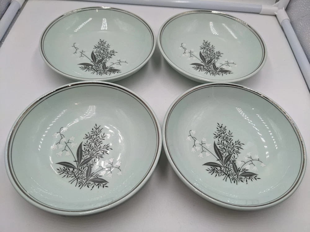 These bowls are a very pale blue-green color with a design of lily-of-the-valley and platinum trim. The bowls have a diameter of about 5.5 inches and are about 1.25 inches high. I am a careful and thorough packer, but for some of the items I sell, I’m not able to use combined shipping because of their size or propensity to break if put into a box with other items. If you purchase more than one item from my store and ask for combined shipping, I will do my best to accommodate your request. I will accept any reasonable offer so please feel free to send your offer. T hank you for visiting my store. I hope to see you again soon!