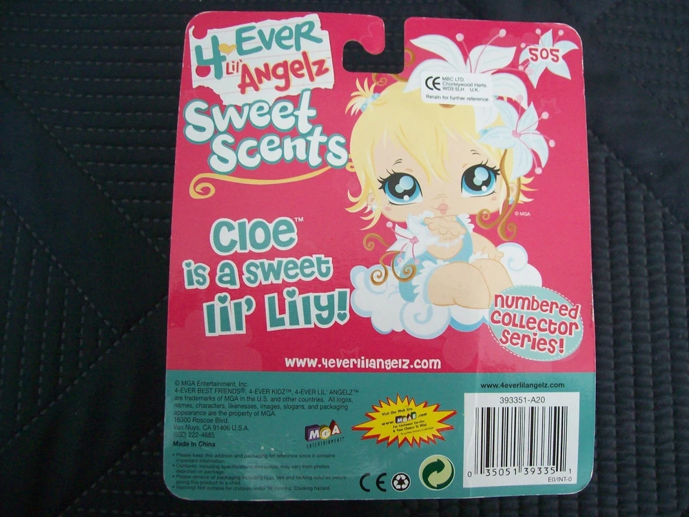 Here I have 2 x 4 Ever Lil' Angelz adorable babies as follows: They are both still in their blister packs which are in good condition considering they have been in my storage for over 10 years. Both the fragrances are still quite strong. Yasmin 504 Rose Scent Cloe 505 Lily Scent Thank you for looking
