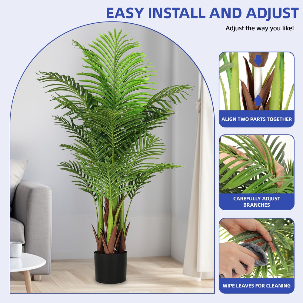 4 FT Artificial Areca Palm Tree 22-Leaf Plant Indoor Outdoor Home Office Decor Product Description NOTE: Professional Installation would be Highly Recommended. Description: 1. Material: Plastic/Polyvinyl Chloride, Polypropylene 2. Color: Green 3. Features: 4FT Artificial Palm Tree with 22 Realistic Leaves, Premium PE & PP Materials for Fade-Resistant, Maintenance-Free Beauty, Reinforced Black Plastic Pot with Heavy Cement Base for Stability, Perfect for Indoor & Outdoor Decor – Ideal for Homes, Offices, Living Rooms, Patios, & Seasonal Decorations, Quick & Easy Assembly with Adjustable Detachable Leaves, Lush Tropical Greenery for Any Space 4. Suitable For Home Office Decoration Features: Lush & Vibrant Tropical Charm – A Refreshing Greenery Accent : Bring the beauty of nature indoors with this realistic 4FT artificial palm tree , featuring 22 carefully crafted leaves with natural-looking textures and vibrant green hues . Whether you place it in a living room, hallway, patio, or office , this lifelike Areca Palm instantly enhances any space with a touch of tropical elegance . Superior Quality & Durability – Built to Last with Sturdy Base Support : Designed with high-quality PE leaves and a strong PP black plastic pot , this artificial palm tree is fade-resistant, waterproof, and long-lasting . The sturdy base is reinforced with heavy cement , ensuring stability and durability , so your palm tree stays securely upright without tipping over . Versatile Indoor & Outdoor Decor – Ideal for Any Space or Occasion : Measuring 125 cm (4FT) in height , this faux palm tree is a perfect addition to living rooms, bedrooms, offices, porches, patios, hallways, and entryways . Whether used for Christmas, Halloween, Thanksgiving, or everyday decoration , it adds a refreshing, maintenance-free touch of greenery anywhere. Effortless Beauty – No Watering, No Maintenance Required : Unlike real plants, this artificial palm tree never withers, sheds leaves, or needs sunlight , making it a perfect low-maintenance alternative . Enjoy year-round greenery without worrying about watering, pruning, or pest infestations —just set it up and admire its everlasting beauty! Dimensions: 1. Overall Size: 6.3"D x 6.3"W x 49.2"H 2. Item Weights : 8 lbs Package Included: 1.1pcs Palm Tree 2. Assembling Hardware Kits 3. Instruction Manual Book Note: Since the branches are on the packaging, when the tree arrives, please make sure to arrange the branches properly for a more attractive appearance. Shipping 1. Normally the item will be dipatched within 1 business day if payment is cleared before 12pm PST. 2. Please verify the correct shipping address in your PayPal account before making the payment. We only dispatch the item to the address that is sent to us at the time of checkout. 3. We don't ship to Hawaii, Alaska, Puerto Rico, APO/FPO/PO Boxes. 4. We don't provide local pick-up service. 5. Normally we will use USPS, UPS, FedEx & LTL to dispatch items. Payment 1. We accept PayPal and credit card. 2. We will ship to the confirmed Paypal shipping address that is provided with the payment only. Return 1. 30 days Money Back Guarantee. 2. Please contact our customer service to receive a RMA form first if want to return the item. 3. All returned items MUST in new condition with the original package. Contact If has any problem, please contact us by sending an ebay message. Our customer service will resolve the problem as soon as possible. On Aug 8, 2024 at 03:04:35 PDT, seller added the following information: On Feb 5, 2025 at 02:43:04 PST, seller added the following information: