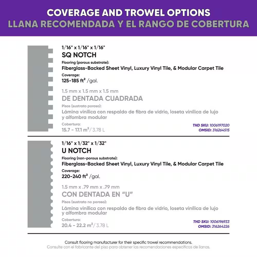 Container Size: 4 Gallon Color Family: Beige Returnable: 90-Day gtin13: 313116824898 Lifetime Warranty: No Commercial / Residential: Commercial / Residential UPC: 313116824898 Location: Floor Type: Does not apply Maximum Coverage Area (sq ft): 960 sq ft Container size (qt): 16 Indoor/Outdoor: Indoor Flooring Type: Carpet,Vinyl Product Width (in): 12.5 in Dry time (hours): 24 Manufacturer Warranty: Adhesive Bond: Limited Lifetime (when installed by Certified Floo Flooring Product Type: Vinyl Adhesive Product Weight (lb): 38 lb Flooring Material Features: Antimicrobial,Latex based,Solvent free,Water based Brand: ROBERTS Adhesive Type: Vinyl