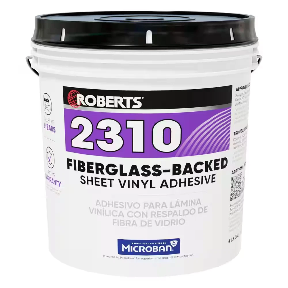 Fast Shipping On All Items 30 Days Money Guarantee Customer Support Excellent Service 100% Satisfaction Satisfaction Guaranteed 4 Gal. (16 Qt.) 24 Hour Dry Time Fiberglass-Backed Sheet Vinyl Floor Adhesive in Beige Specification Adhesive Type Vinyl Color Family Beige Commercial / Residential Commercial / Residential Dry time (hours) 24 Flooring Material Features Antimicrobial,Latex based,Solvent free,Water based Flooring Product Type Vinyl Adhesive Flooring Type Carpet,Vinyl Indoor/Outdoor Indoor Location Floor Product Weight (lb) 38 lb Returnable 90-Day Lifetime Warranty No Manufacturer Warranty Adhesive Bond: Limited Lifetime (when installed by Certified Flooring Pro) or Limited 10 Years Container Size 4 Gallon Container size (qt) 16 Maximum Coverage Area (sq ft) 960 sq ft Product Width (in) 12.5 in 12.5 inches. Weight: 38.0 lb Item Description For installation of fiberglass-backed sheet vinyl Compatible with multiple subfloors, 24-hour cure time Powered by Microban for superior mold and mildew protection ROBERTS 2310 Fiberglass-Backed Sheet Vinyl Adhesive is formulated with the desired tack and flexible working time for fiberglass-backed sheet vinyl, luxury vinyl tile and carpet tile. It is pressure sensitive and remains tacky for both permanent or releasable installations. Powered by Microban, this antimicrobial product protection helps fight the growth of stain and odor-causing bacteria that can cause product degradation. ROBERTS 2310 can be used for installation of small format luxury vinyl tile (LVT) up to 12 in. x 12 in. and vinyl-backed carpet tile. Made in the USA, this superior adhesive is non-flammable and solvent-free for a low VOC application. About us We offer the best prices around on high quality products. Our E-store includes media such as books, movies, music and games while offering electronics, toys, sporting apparel, clothing, tools, general home, garden items and more. Shipping We are always working hard to ensure your package arrives as soon as possible. Please understand that some factors like weather, high postal traffic, and the performance of shipping companies are outside of our control. We offer free shipping to the lower 48 states and ship within 2-3 business days of payment, usually sooner. We do not accept P.O. Boxes. Please provide a physical address. For shipping outside of the continental USA, we only use eBay's Global Shipping Program.The item is shipped to KY and then sent to the rest of the world. International customers are responsible for all duties and taxes. Continue to check out to calculate costs for shipping the item to your country. Messages regarding eBay's Global Shipping Program MUST be directed at eBay EXCLUSIVELY. Returns We offer a 30-Day Return Policy on items in which you are not completely satisfied with. You have the option of a full-refund or an exchange of the item. No returns are available on items shipped outside of the USA Satisfaction We try over very best to make sure every customer is completely satisfied. If there's a problem, message us! We're happy to help. Payment Options Shop With Confidence