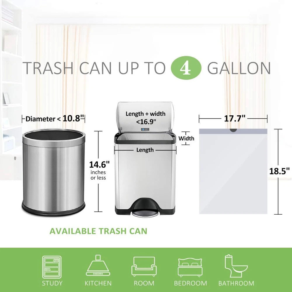 4 Gallon 120 Counts Strong Drawstring Trash Bags Garbage Bags by , Bathroom Trash Can Bin Liners, Small Plastic Bags for home office kitchen, White MATERIAL: our trash bags are all made of the HDPE material. This kind of material can make the garbage bags stronger. MULTIPURPOSE: This bag is designed not only for indoor use (for office, kitchen, living room, bedroom, bathroom etc) but also for outdoor applications (cat litter, car trash etc). Convenient Drawstring Handles: The strong drawstring let a tight grip on trash cans , so there is no messy bag overhang or bunching. SIZE FOR SMALL TRASH CAN: An integral forming on the bottom leaves no space to leak. ROLL DESIGN: You can put a roll of garbage bags in your rooms, living room, bathroom, your kitchen and your car, etc. Shipping We offer FREE shipping on all orders! We ship within Three business days of payment, usually sooner. We use a selection of shipping services such as UPS, FedEx, USPS etc. We only ship to the lower 48 states, no APO/FPO addresses or PO Boxes allowed. Local pickups and combined shipping options are not provided at this time. Return You can return a product for up to 30 days from the date you purchased it. Any product you return must be in the same condition you received it and in the original packaging. Please keep the receipt. Payment We accept payment by any of the following methods: PayPal Please pay as soon as possible after winning an auction, as that will allow us to post your item to you sooner! Feedback Customer satisfaction is very important to us. If you have any problem with your order, please contact us and we will do our best to make you satisfied. Contact Us If you have any queries, please contact us via ebay. We usually respond within 24 hours on weekdays. Please visit our eBay store to check out other items for sale! Thank you for shopping at our store.