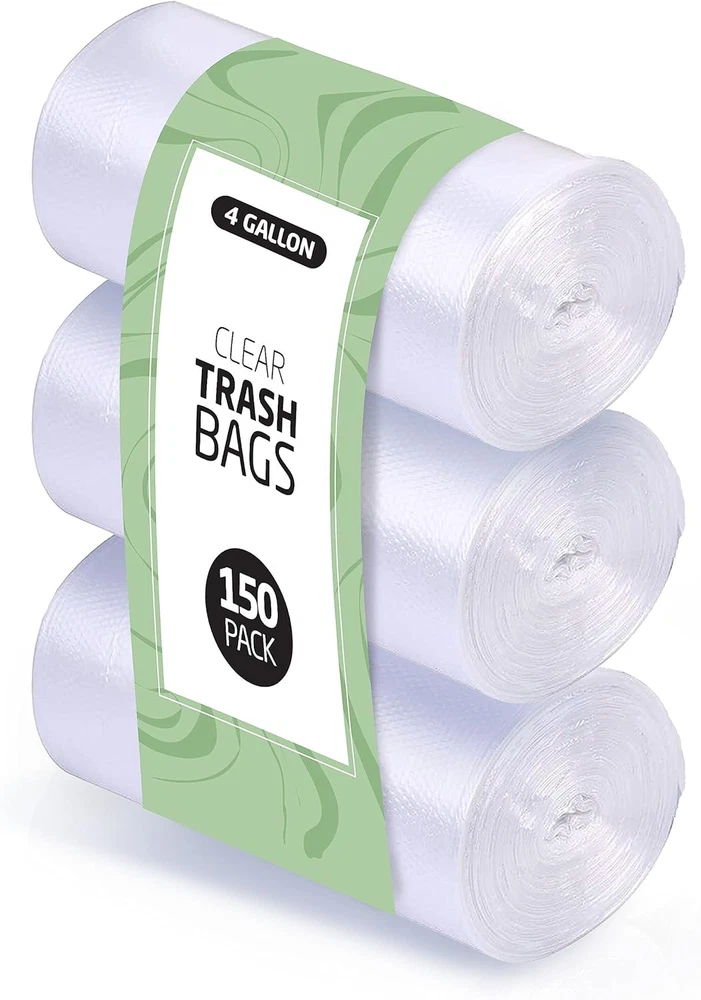 4 Gallon Trash Bags - 150 Small Mini Garbage 1 Count (Pack of 150), Clear Product Details Brand: Supellectilem Capacity: 4 Gallons Unit Count: 150.0 Count Recommended Uses For Product: Bathroom Trash, Kitchen Waste, Toilet Waste Color: Clear Material: Plastic Item Form: Bag Scent: Unscented Number of Items: 150 Item Weight: 11.64 Ounces Manufacturer: Supellectilem Part Number: 4GTB-150 Item Weight: 11.6 ounces Package Dimensions: 5.16 x 4.47 x 1.82 inches Country of Origin: China Item model number: 4GTB-150 Size: 1 Count (Pack of 150) Style: 4 Gallon Item Package Quantity: 150 Included Components: 4 Gallon Clear Trash Bags - 150 Pack Batteries Included?: No Batteries Required?: No Brand: Supellectilem Capacity: 4 Gallons Unit Count: 150.0 Count Recommended Uses For Product: Bathroom Trash, Kitchen Waste, Toilet Waste Color: Clear Material: Plastic Item Form: Bag Scent: Unscented Number of Items: 150 Item Weight: 11.64 Ounces DISPOSE YOUR TRASH WITHOUT WORRY - you can use this 17" x 18" can liner / trash bag in a variety of places like restrooms, offices, restaurants, hotels, amusement parks, or outdoor recreation centers! With a resilient and reliable construction, this high density can liner / trash bag is up for all of your tough disposal challenges. STAR SEAL - featuring a star seal at the bottom, this 4 gallon Janitorial can liner helps eliminate leaks, messes, and spills to make carrying the trash from the bin to the dumpster much easier. In addition, it prevents daily cleaning of trash cans because it keeps the bag's contents from making contact with the can's surface. RESIN CONSTRUCTION - made from the basic raw material resin and in high density form, this can liner is a more economical alternative to a low density can liner / trash bag. It is also temperature-resistant from -40 to 212 degrees Fahrenheit. 6 MICRON THICKNESS - with a 6-micron thickness, this bag is perfect for disposal of paper and other lightweight materials. While this bag is not meant to collect sharp objects, its construction makes it more puncture-resistant. SMART DESIGN - unlike common black liners, this clear can liner allows you to easily view and identify the contents of the bag so that recyclables and trash always end up in the intended location. It is also able to easily be tied and carried for convenient and clean removal. Plus, thanks to the coreless roll, this product also helps reduce waste. DISPOSE YOUR TRASH WITHOUT WORRYYou can use this 17" x 18" can liner / trash bag in a variety of places like restrooms, offices, restaurants, hotels, amusement parks, or outdoor recreation centers! With a resilient and reliable construction, this high density can liner / trash bag is up for all of your tough disposal SEALFeaturing a star seal at the bottom, this 4 gallon Janitorial can liner helps eliminate leaks, messes, and spills to make carrying the trash from the bin to the dumpster much easier. In addition, it prevents daily cleaning of trash cans because it keeps the bag's contents from making contact with the can's surface.RESIN CONSTRUCTIONMade from the basic raw material resin and in high density form, this can liner is a more economical alternative to a low density can liner / trash bag. It is also temperature-resistant from -40 to 212 degrees Fahrenheit.6 MICRON THICKNESSWith a 6-micron thickness, this bag is perfect for disposal of paper and other lightweight materials. While this bag is not meant to collect sharp objects, its construction makes it more puncture-resistant.SMART DESIGNUnlike common black liners, this clear can liner allows you to easily view and identify the contents of the bag so that recyclables and trash always end up in the intended location. It is also able to easily be tied and carried for convenient and clean removal. Plus, thanks to the coreless roll, this product also helps reduce waste.
