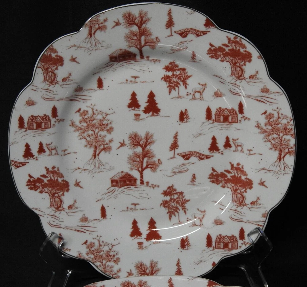 4 Grace Teaware Porcelain Holiday Red Winter Village Toile Plates 9" New and without issues. Great luncheon size @ 9" Questions Are Always Welcome! I ship no later than the next business day. I leave positive feedback as soon as payment is made and ask that you please return the courtesy when you receive your shipment. If there is ever an issue please let me know ASAP. Thanks for looking!