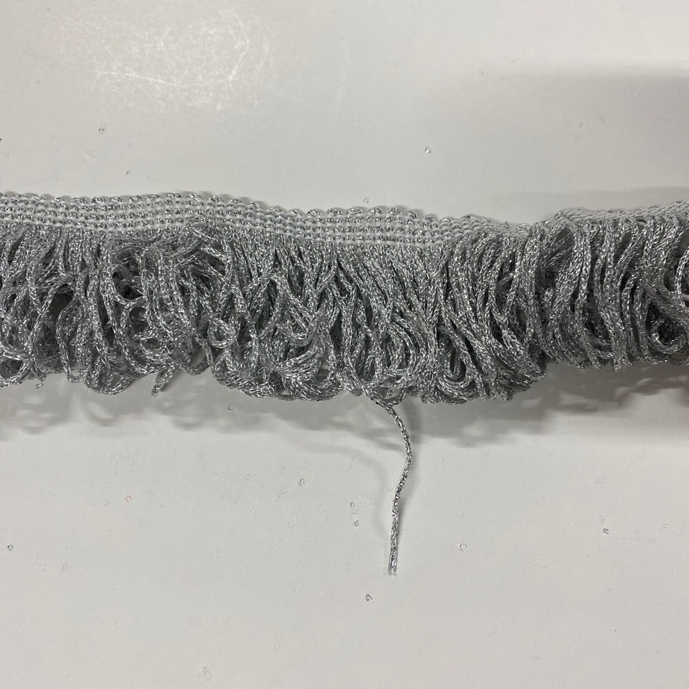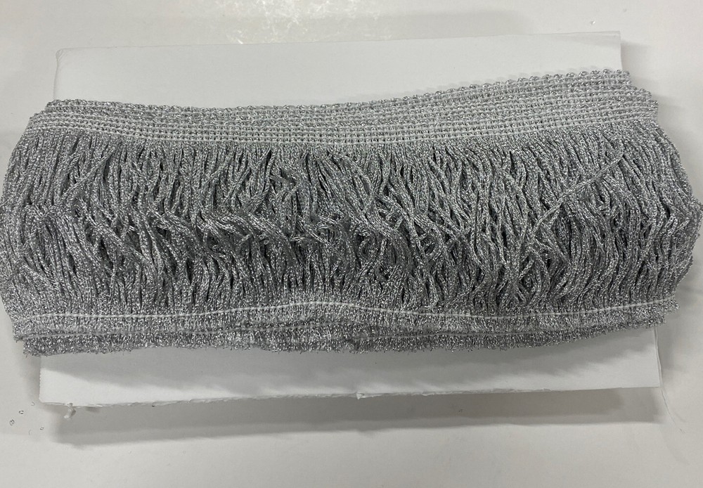 4” Grey Metallic Chainette Fringe Shawl Regalia Lampshade Costume Trim 5 Yds. This is new old stock from my personal sewing inventory. I have not used this type before so I have no past experience with its performance. Thanks!