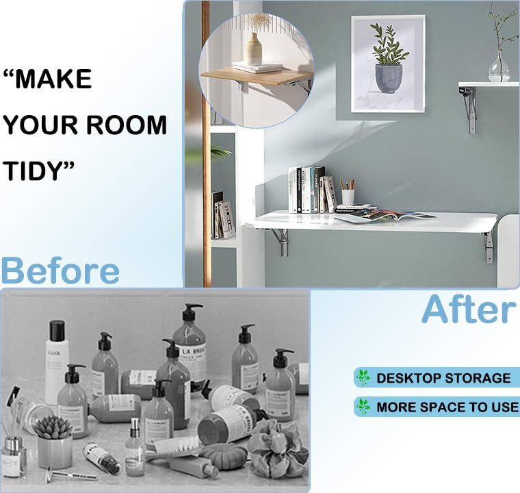 √ 4 Pack Sturdy & Heavy Duty Bracket Set: Made of durable Stainless Steel, our folding shelf brackets provide a elegant & graceful surface, which is not easy to scratch, and can resist daily scratches and corrosion, ensuring durability and abrasion resistance. Premium stainless steel, no paint off, more durable. √ Space Saving & -Click Foldable Design: The Folding Brackets Heavy Duty are perfect for DIY jobs around the house, garage & courtyard. Pop it out when you need it and fold it away to save more space when not in used. Make the most of your family space for your garage, kitchen, workshops, backyard, trailer, bedroom, and warehouse. √ Larger Load-bearing Capacity Up to 200 Lb: Triangle structure, holds a great amount of weight, supports up to 200lb/100kg. Perfect for making workstation in garage, folding table hinge for ' study table, bench in backyard, clothes table in laundry room, bookshelf, kitchen shelf, exhibition stand and dining-table in your car. √ Wide Application & Easy Installation: Provide you with more creative home improvement ideas to save most space in your garage, laundry room, kitchen, workshops, boats, backyard, trailer, bedroom, balcony and bathroom. Comes with mounting accessories, premium screws for various walls ,high-quality anchors and professional user manual. √ Various DIY Projects & Multifunctional & Great Service: You can use it to build a foldable bar table on the pony wall, Make a pull-up board on the countertop for extension in motor home, Add a folding shelf to a BBQ grill, Add an extra few fold-out table on each side of the workbench, etc. If you have any quality problems, please feel free to us.