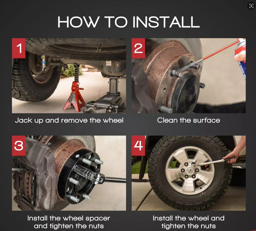 Specification: Total Width: 1.5" Vehicle Bolt Pattern: 5x5" (5X127mm) Wheel Bolt Pattern: 5x5" (5X127mm) Thread Pitch: 14x1.5 Hub Bore: 71.5mm Fitment: 2018-2021 Jeep Wrangler JL 2011-2021 Jeep Grand Cherokee WK2 2019-2021 Jeep Gladiator JT 2011-2021 Dodge Durango Package include: 4Pcs Wheel Spacers Installation Steps: Step 1: • Following your vehicle owner's manual, proper raise the vehicle and support it using adequately load-rated jackstands. • Remove wheels and inspect rotors for any damage or cracks. If any damage is identified, don't continue with this installation. • Remove any wheel visible rust from the mating flange on the vehicle's rotor. Check both the rotor and wheel mounting flanges for burns, rivet heads, or other obstruction which could prevent proper seating of the spacer/adapter. Step 2: • If proper seating can be achieved, apply provided thread locker to vehicle's studs and mount the wheel spacers on to rotor by torquing provided wheel spacers/adapter lug nuts. Tighten all lug nuts to the appropriate torque specification using a torque wrench. • Install wheel on to wheel spacer using existing lug nuts. Tighten all lug nuts to the appropriate torque specification using a torque wrench. • DO NOT USE AN IMPACT WRENCH. Step 3: • Check that wheel and tire clearance allow for full steering(lock-to-lock). • If there is no interference, vehicle may be lowered. • Re-check torque after traveling the first 50-100 miles, then again every 2000-3000 miles. What Do Wheel Spacers Do? • Avoid Side Roll-over: Wheel spacers can help to reduce side roll-over due to an increase in resistance, especially when you are turning very fast, so as to ensure driving safety. • Provide Better Traction: After installing our wheel spacers, you can enjoy better traction when driving, so they will greatly improve your driving experience. • Widern Tire Spacing: After the tire spacing is widened, you can enjoy more room for modification on your cars performance and looking, such as installing a larger wheel. High-Quality Raw Materials CNC Precision Manufactured,6061 T6 Forged Aluminum Alloy Disc Body,ensure driving safety and improve your driving experience Easy Installation Clean the studs thoroughly and remove any excessive dirt, oil, grease etc Highly recommended professional installation Widen Tire Spacing After the tire spacing is widened, you can enjoy more room for modification on your cars performance and looking,such as installing a larger wheel wheel Bolt Pattern Guide The following is the easy and simple way to check the bolt pattern/PCD, center/hub bore and thread pitch. If you donot sure, please just message us with the year, make and model of vehicle. Check Compatibility How to Confirm Whether the Product Fits for Your Vehicle? Payment 1) We accepts all major credit cards via PayPal: MasterCard, Visa, American Express and Discover. 2) We will only ship to the confirmed PayPal shipping address given with the payment. 3) If you want to ship to other address, please change your PayPal shipping address before you make payment. 4) To avoid initiating an unpaid item claim, please pay within 7 days. Shipping Policy 1) We will ship item locally for US buyers. Usually for US buyers it will take about 5-7 business days to reach. If you don't get it, please contact us firstly, we'll try our best to support you. 2) For US customers, all items will be shipped out within 1-2 business days with cleared payment. Please included your phone number to the payment note for prompt and secure shipment. 3) Tracking numbers for all orders are added to eBay once they have been dispatched; please login to eBay to find the tracking information for your order. Contact Us If you have ANY questions with shipping, product or service, please Contact Us first before leaving feedback/write a review or filing a return case. We will solve the problem! We always put our customers first and your satisfaction is guaranteed. Our Tech's are here to serve you. Email us and our expert team will swiftly diagnose the issue and offer the best solution within 12-24 business hours. All off-hours emails will be answered within 24-48 hours. About returns If you send email to us,In our working hours will be resumed within 48 hours. Please feel free to contact us if you have any questions: Dear my friend,we appreciate your support.And our goal is service you well and give you a pleasant shopping time in our store. ✅Dear customer, when you want to return or exchange goods (Please contact us first, instead of directly initiating a dispute) 1: Contact the seller first 2: Send pictures: outer packaging&scanned labels&item itself&with complete accessories, etc necessary condition Rule A: The original packaging of the item is in an unused state. Rule B: The outer packaging must not have any damage. 3: Obtain return label 4: Delivered Projects - Payment Repayment ✅A 15% restocking and shelving fee will be charged for returns or exchanges that are not caused by the seller and are in good condition. Exchange will not charge restocking fees or shipping fees due to transportation errors ✅Priority In case of the following reasons, the freight will be borne by the buyer 1: Unexpected order 2: Find a better price 3: Change your mind 4: Buy more items/make mistakes/misread model information ✅Please note Missing accessories/quality issues/transportation damage, etc Please contact us first to obtain a good solution, rather than directly opening a return dispute. Thank you very much for your understanding. I hope we have a pleasant cooperation! FeedBack It's highly appreciated you leave us positive feedback and 5 star rating comments if you are satisfied with our service! Your comment is very important in our business success. Please feel free to contact us first before leave indifferent feedback or 1-3 star good feedback and open Case. we will try our best to solve your problem.Because we believe Anything can be resolved throug