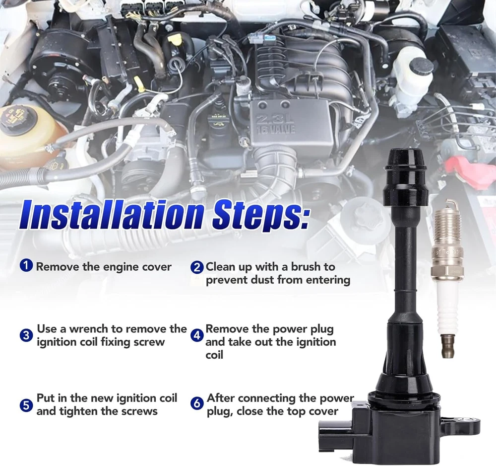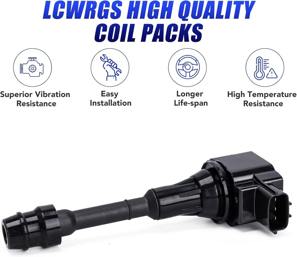 Compatibility: Ignition Coil Pack and Spark Plugs for 2002 2003 2004 2005 2006 Nissan Altima L4 2.5L | 2002 2003 2004 2005 2006 Nissan Sentra L4 2.5L Premium Performance: LCWRGS coils and spark plugs are built to achieve or exceed OE specifications, Highly conductive copper wire and high dielectric performance epoxy ensure excellent connectivity and long service life Replace OEM Part Number: UF350 5C1395 C1398 224488H300 C1398 coils and 4505 spark plugs; Direct OEM design ignition coils and plugs, easy to install and fits popular vehicles as 2002 2003 2004 2005 2006 Nissan Altima Sentra 2.5 liters 4 cylinders Enhanced Coils and Spark Plugs: Over time your factory coil and plug will fail leading to poor gas mileage, misfire, hesitation, check engine light, new coils and spark plug will Upgrade 15% more energy than OE coils and improve engine performance Package Content : Set of 4 Ignition Coil Packs and Spark Plugs; 24-Month-Warranty; If you have any issues or problems about the ignition coils please reach out to us any time we will hep you resolve by our best Product Description Ignition Coils High Performance & Top Quality Compatible With Nissan Models Coils: 2002 Nissan Altima 2.5L L4 2003 Nissan Altima 2.5L L4 2004 Nissan Altima 2.5L L4 2005 Nissan Altima 2.5L L4 2006 Nissan Altima 2.5L L4 2002 Nissan Sentra 2.5L L4 2003 Nissan Sentra 2.5L L4 2004 Nissan Sentra 2.5L L4 2005 Nissan Sentra 2.5L L4 2006 Nissan Sentra 2.5L L4 What's the Symptoms of Bad Ignition Coils? A faulty coil could cause major performance and structural issues for your vehicle, so if are experiencing any of the below symptoms, that means you need to check your coils emmidiately 1. Vehicle Hard to Start 2. Check Engine Light On 3. Misfire Engine 4. Poor Gas Mileage Control 5. Diminishing Power Output 6. Oil Leaking Why Choose Our Ignition Coils? Match or Exceed OE Engineered We have OE-level training and advanced testing equipment. Our ignition coils are engineered for original equipment and replacement applications to ensure easy installation. Innovative Design We utilize the latest OE technology and components to bring exceptional quality and durability to exceed OE requirements. Each coil is designed to provide specialized performance, low emissions, and high energy output. The plug boot contains a high heat-resistant compound to withstand heat and increase longevity. Robustly Constructed Our coil is designed with top-notch materials, it is effective and durable. The product comes with high-quality wires along with wire coating,wire coating plays a vital role in resisting cracks, imperfections, and pinholes, significantly improving ignition efficiency. Premium Automotive Supplier LCWRGS has been a trusted leader and innovator in ignition coil technology. You can count on LCWRGS Ignition Coils for performance and value, backed by decades of experience and passion.