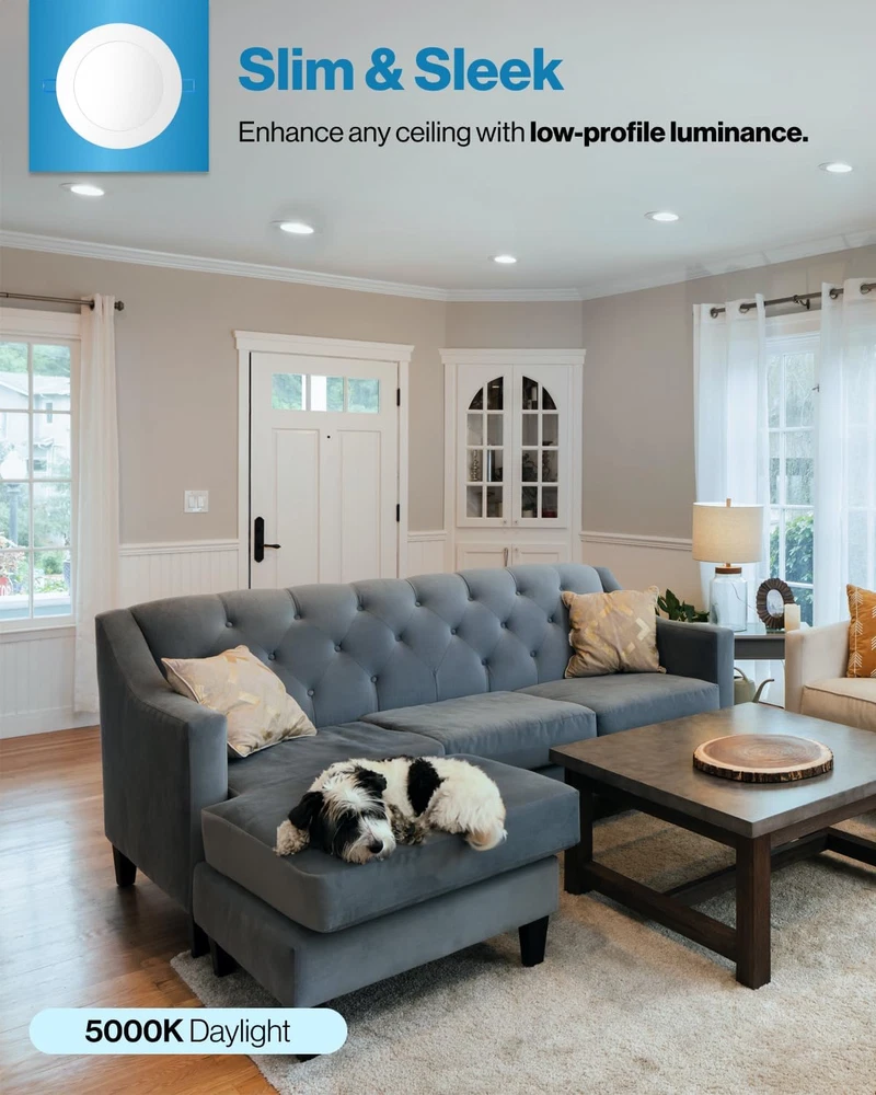 4 Inch Slim LED Downlight with Junction Box and Smooth Trim IC RATED - Sunco's slim downlights are IC rated, meaning they are thermally protected and won’t overheat or ignite surrounding insulation in the roof or overhead joist space. Both the light and its junction box are safe for direct contact with ceiling insulation. SIMPLE INSTALL - Our LED slim downlights come equipped with a junction box which means they do not need a can. Spring-loaded brackets fit any ceiling type: double drywall, single drywall, and soffit. DIMMABLE - Seamless dimming capabilities (10%-100%) to fit any mood or décor. Our slim downlights give off sunlight-like quality for true color rendering. SUNCO BENEFITS - 7 Year Protection! Sunco is proudly based in the USA, offering quality products at affordable prices backed by industry-leading warranties and knowledgeable support specialists. Product Description Similar Products Add to Cart Customer Reviews 4.3 out of 5 stars 2,152 4.4 out of 5 stars 1,535 4.6 out of 5 stars 1,571 4.4 out of 5 stars 123 4.7 out of 5 stars 1,144 Price — $99.99 $ 99 . 99 — $54.99 $ 54 . 99 $24.99 $ 24 . 99 Lumen Count 650 Lumens 650 Lumens 650 Lumens 750 Lumens - Wattage 11W 10W 10W 12W - Equivalency 60W 60W 60W 75W - Dimmable ✓ ✓ ✓ ✓ - Junction Box Included ✓ ✓ Integrated ✓ - Color Rendering - - - CRI 90+ - Voltage 120V 120V 120V 120V - Moisture Rating Damp Rated Damp Rated Damp Rated Damp Rated - IC Rated ✓ ✓ ✓ ✓ - Can Required No No No No -
