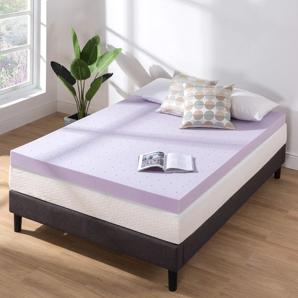 Instantly upgrade your old mattress with Best Price Mattress' lavender-infused ventilated bed topper. It's a mattress topper pad, made with 4 inches of CertiPUR-US certified, premium memory foam to revamp your old mattress for maximum comfort and improved sleep quality. The lavender infusion works as a natural relaxant to soothe you into a good night's sleep. Its breathable open cell design optimizes airflow, reducing body heat and helping to keep your topper fresh for a longer time. Memory foam is well known for its body contouring features and pressure comfort throughout your whole body. Once you lay down, our memory foam toppers will start reacting to the temperature of your body and begin to mold itself to your shape, evenly distributing your weight. Product Note: Please allow 24 - 72 hours for your Mattress to regain its full shape. Any memory foam will expand faster in a warmer room. In cold temperature, at delivery, your mattress may take a bit longer to return to full sized from its compressed state.The expansion time of the mattress will vary as per the surrounding 4-inch ventilated memory foam topper to upgrade your sleep quality Ventilated design optimizes airflow and reduces trapped body heat Infused with lavender, a natural relaxant, for a soothing night's sleep Responsive active suspension isolates motion to provide undisturbed sleep for you and your partner CertiPUR-US certified memory foam, 3-year manufacturer's