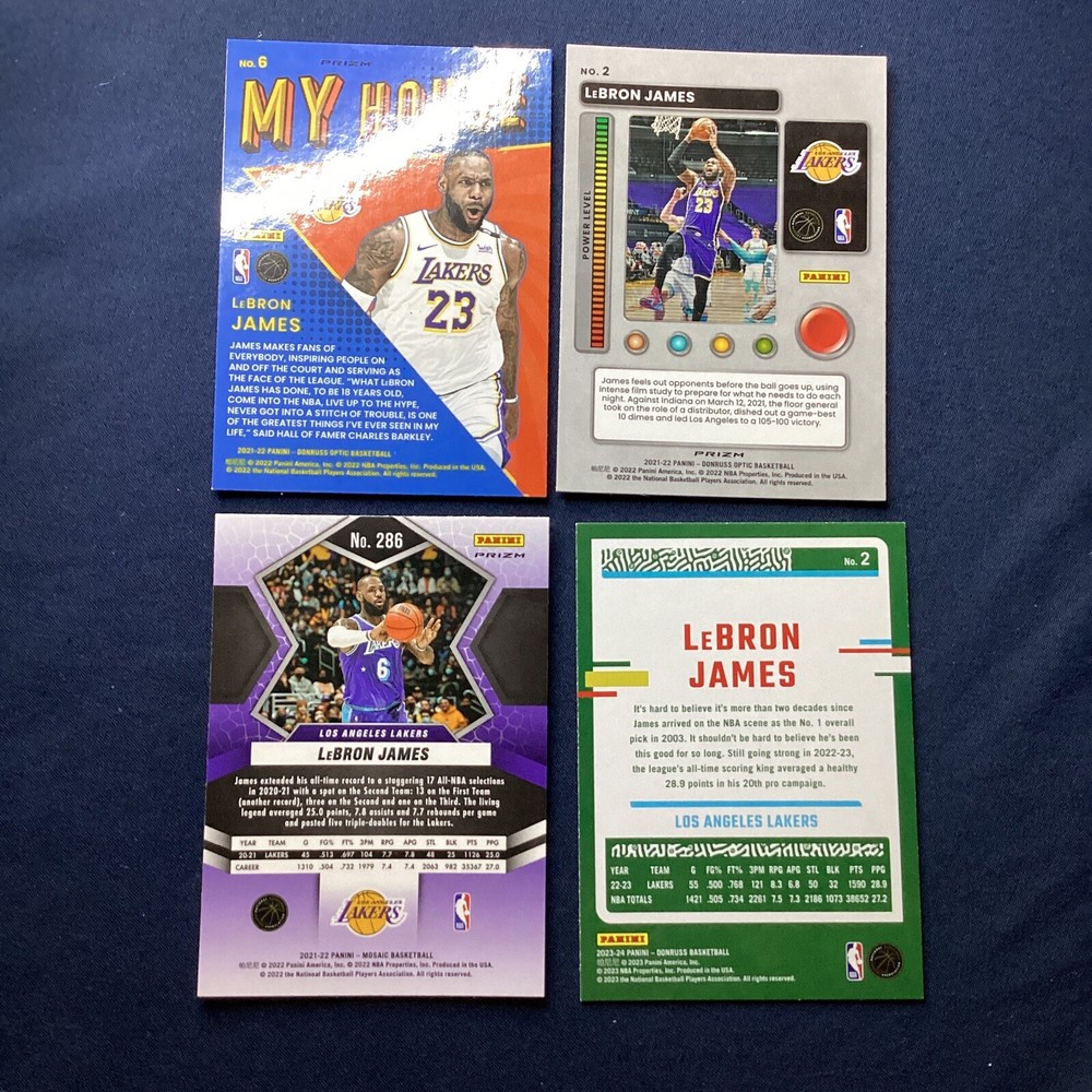 4 Lebron James Insert Lot Featuring Mosaic, Donruss, and Donruss Optic