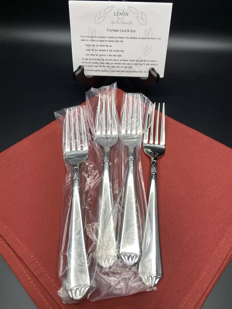 The listing is for 4 (four) Lenox British Colonial Stainless Dinner forks each measures approximately 8-1/8 inches long. New and unused from my own personal stock 17 years ago. They are all in excellent condition. The dinner forks weigh approximately 8 ounces without packaging material. Will package with great care and thank you kindly for your consideration. REASONABLE SHIPPING: Calculated shipping: Weight and distance based shipping via USPS Ground Advantage domestically USA from South Florida. USPS Ground Advantage is lowest shipping cost. Estimated delivery of 2-8 business days. Shipping costs is based on item(s) weight including packaging materials and the distance from the seller’s zip code to the buyer’s zip code. Buyers whose shipping address/zip code is in the East coast of USA tend to have higher shipping costs as distant is longer from seller’s South Florida zip code. Ships globally via Ebay International Shipping Delivery.