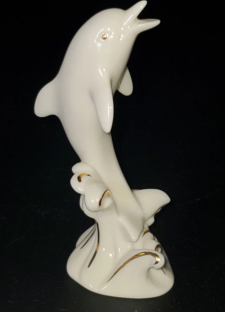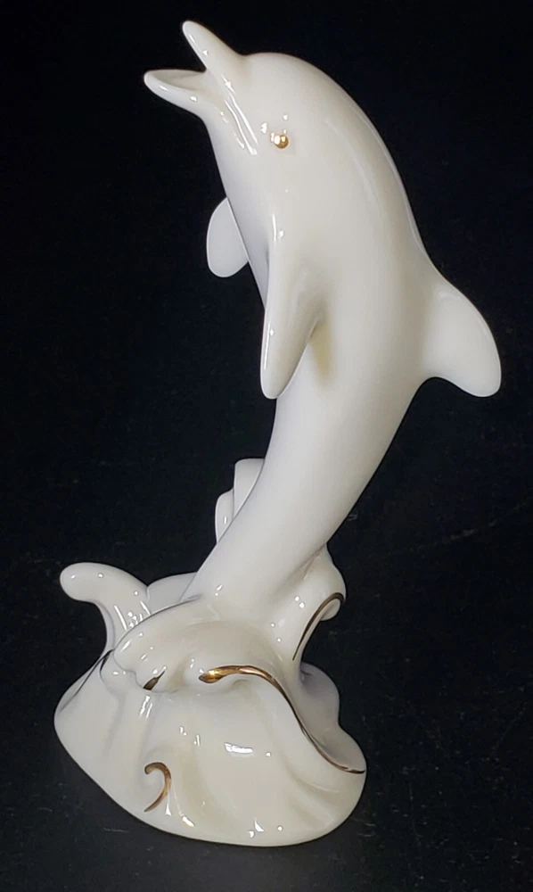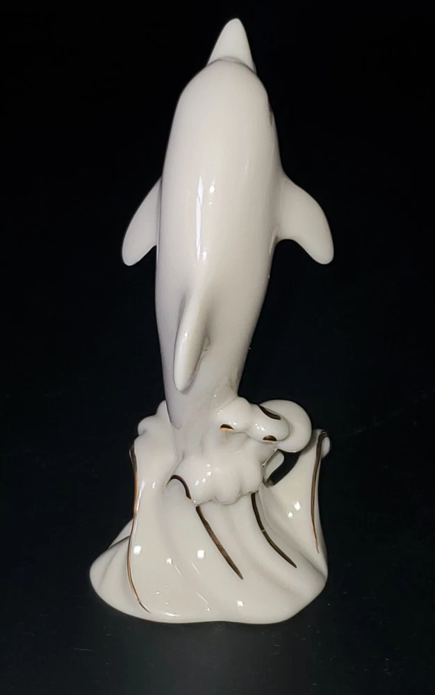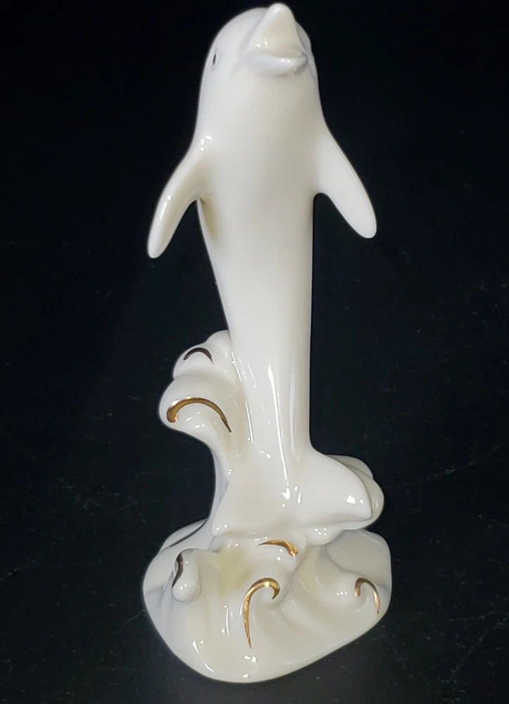 4" Lenox Dolphin Figurine China 24K Gold Accents Wave Standing Handcrafted