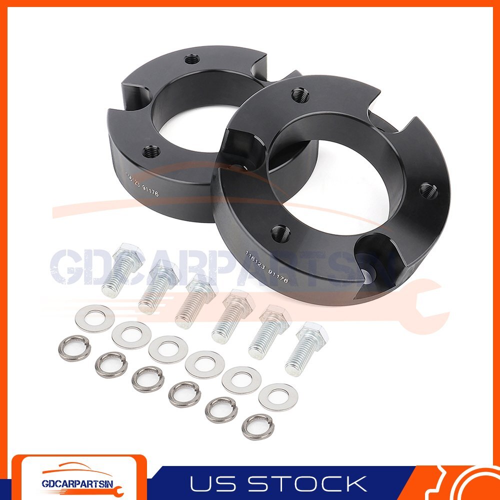 Front Spacers: After removing the wheel, remove any brake line and ABS line brackets, so you have enough slack in the lines. Use a wrench to remove the upper strut mount nuts and the upper ball joint nut. Strike the side of knuckle with a hammer to get the ball joint to separate. Using a wrench, remove the steering linkage nut. Remove the sway bar nut and bushing. Remove the two lower strut mount bolts and remove the strut from the vehicle. (4) Leveling Kit Lift Front 2.5" & Rear 2" Fits Toyota Tundra 1999-2006 2WD 4WD Front Spacers: After removing the wheel, remove any brake line and ABS line brackets, so you have enough slack in the lines. Use a wrench to remove the upper strut mount nuts and the upper ball joint nut. Strike the side of knuckle with a hammer to get the ball joint to separate. Using a wrench, remove the steering linkage nut. Remove the sway bar nut and bushing. Remove the two lower strut mount bolts and remove the strut from the vehicle. Install the supplied bolts into the leveling kit spacer. These will act as the new studs when reinstalled. Bolt the spacer to the top of the strut using the supplied nuts. Rotate the strut 180 degrees and install it back into the truck. Re-insert the lower strut bolts. The lower mount bushing will rotate to correct the angle. Raise the lower control arm to raise the spindle while lowering the upper control arm to re-install the upper ball joint and Re-install the steering linkage. Complete the installation on the other side of the truck before reinstalling the sway bar nut and bushings. Rear Blocks: Support the rear axle with a jack and jack stands. Remove the brake and parking brake cables so there is slack in the lines. Remove the lower rear shock mount nut and bolt. Remove the factory rear U-bolts and discard them. Lower the axle to remove the factory block, or you can put new blocks on the factory block, get a new lift. Install the new rear block making sure the smaller side of the spacer is facing the front of the truck. Install the new supplied U-bolts and torque to factory spec. Complete the installation on the other side of the truck before reinstalling any brake or ABS lines. After 100 miles recheck torque to factory spec. Item Specifics Condition New Manufacturer Part Number GD832414CAR Brand GDcarpartsin Lift Height 2.5" Front & 2" Rear Actual Thickness of Spacer 32mm/ 1.26inch Note Lifting height is not exactly equal to spacer thickness Location Front Upper & Rear Lower Included Hardware All Parts in pictures included Item Type Leveling Kit Fitment Type Performance/Custom Placement on Vehicle Front Rear Left Right Warranty 1 Year Material Aluminum Steel Kit or Single Part Kit Ship From Ontario, California Part Type Suspension Lift Kit Fitment Fits Toyota Tundra Type 2WD & 4WD Color Black Shipping 1. Orders processed within 24 hours of payment verification. (if you want cancel orders or change address pls contact us within 6 hours after payment, or we are not responsible for shipping a replacement.) 2. Fast shipping: All our packages use USPS First Class/UPS/Fedex... Package Service 3. If you have not received your shipment within 15 days from payment, please contact! Return 1. If you have a defected item under warranty, you can return it with 30 days after the pruchase date. 2. All returned items must be in the original packaging and you must provide us with the shipping tracking number, specific reason for the return, and item custom lable. 3. We will refund your full winning bid amount, upon receipt of the item in its original condition and packaging with all components and accessories included, AFTER both Buyer and Seller cancel the transaction from eBay. OR, you may choose to have a replacement. Feedback 1. We strive for 100% customer satisfaction! FEEDBACK IS VERY IMPORTANT TO US. 2. We request that you contact us immediately BEFORE you give us neutral or negative feedback, so that we can satisfactorily address your concerns. Payment 1. We accept multiple payment methods. 2. If you want cancel orders or change address pls contact us within 6 hours after payment, or we are not responsible for shipping a replacement. 3. Payment must be received within 10 days as auction ended or order might be delayed. Warranty 1. We stand behind every product we sell. 2. We define the item as defective only if it doesn't function as described. 3. It is the buyer's responsibility to understand the item description before bidding. 4. Man-made damage by abuse or wrong operation is not covered by this warranty. 5. No product liability insurance is assumed. Shop Category Store Home Mirror Parts ◈ Vehicle Mirrors ◈ Truck Mirrors ◈ Mirror Glasses & Other Parts Brake Parts ◈ Brake Rotors ◈ Brake Pads ◈ Brake Rotors + Pads Mass Air Flow Sensors Oxygen Sensors Cooling Parts ◈ Radiators ◈ Radiator Hoses ◈ Cooling Fans ◈ Fan Clutches ◈ Intercoolers AC Condensers Heater Cores Evaporators Wheel Hub Bearings Wheel Spacers Leveling Lift Kits Wheel Lug Nuts Knock Sensors Jack Stands Air Cleaner Filter Boxes Steering U-Joints Steering Shafts suspension kit ◈ cj Idle Air Control Valve 4 pcs wheel hub bearing Fender Flares ABS Speed Sensor Vehicle Speed Sensor Cargo Cover Hub Caps Pillar Posts Polisher Windshield Outer Trim Fuse Holder Box Brake System Parts ◈ Brake Pads & Brake Shoes ◈ Brake Calipers Radiator Support Tonneau Cover Wheel Hub Bearing Knuckle Bug Shield Window Visor Roof Rack Engine Timing Chain Kit Engine Timing Belt Kit Engine Repair Kit headlight assembly Harmonic Balancer Coolant Reservoir Thermostat Housing car tool Bumper Complete Struts Fuel Injectors Coilovers Steering Knuckle Air Shock Shock Struts & Suspension Kit & Hubs Lift Support Horn Tilt Trim Motor Power Brake Booster Dipstick Ballast Module Air Dryer Timing Chain Kit Mud Flaps Protection Shield & Lift Kit Air Intake Snorkel Cylinder Piston Kit Motorcycle Exhaust Pipe Strut Mount Adjustable Rear Control Arm Metal heat shield sleeve Brake Drums& Brak