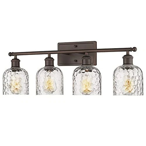 Menu 1. We require immediate payment. 2. We currently accept payment via eBay managed payments only. 3. Once payment is cleared, we will dispatch your shipment within 1-3 business days. Please refer to the "Shipping" tab for more information regarding shipping speed to your destination. 4 Light Fixtures for Bathroom Above Mirror, Vintage Vanity Lighting Fixtures, Oil Rubbed Bronze Finish with Clear Hammered Glass, ZJF63B-4W ORB Product description 【FARMHOUSE & INDUSTRIAL DESIGN】: The 4-light vanity lights over mirror feature a clear hammered glass shade and oil-rubbed bronze finish, reflecting the vintage minimalist design that is suitable for most homes and providing perfect lighting for any space. 【UP/DOWN EASY INSTALLATION】: Hard wired. This farmhouse mirror light can be mounted facing upward or downward to suit your needs. Includes all mounting hardware for quick and easy installation. 【ETL LISTED & WARRANTY】: ETL listed for your safety. It is backed by a 1-year manufacturer's warranty. This oil rubbed bronze bathroom light fixture is ideal for the bathroom, bedroom, dressing room, powder room, headboard, vanity table, makeup dressing table, mirror cabinets, hallway, etc. 【BULB REQUIREMENTS】: Requires 4 x E26 base 60W bulb (incandescent, LED, or CFL). Bulb sold separately. 【24/7 QUALITY SERVICE】: We offer a 30-day money-back for any reason. If you encounter any quality or installation issues, such as a broken glass shade, need replacement parts or help with installation, please don't hesitate to contact us for easy and fast customer service. PLEASE MESSAGE US IF YOU HAVE ANY OTHER QUESTIONS, AND MANY THANKS FOR READING ALL OF THIS. Copyright ©#. All Rights Reserved.