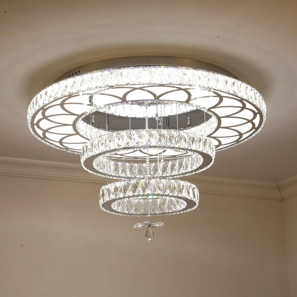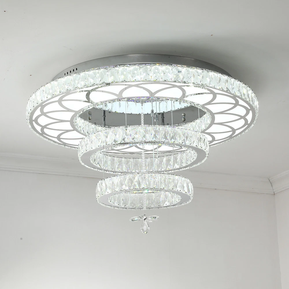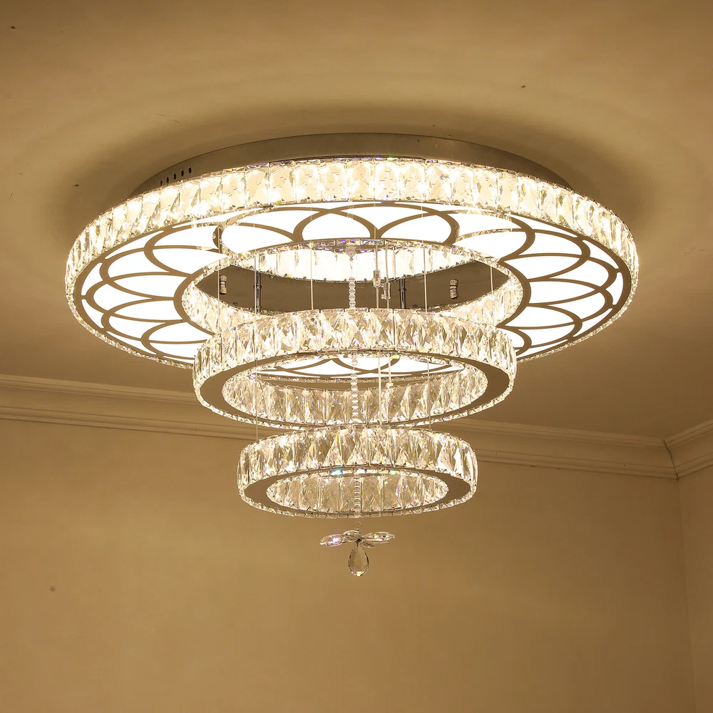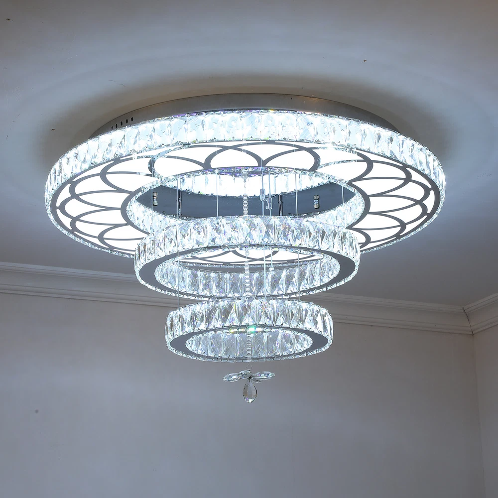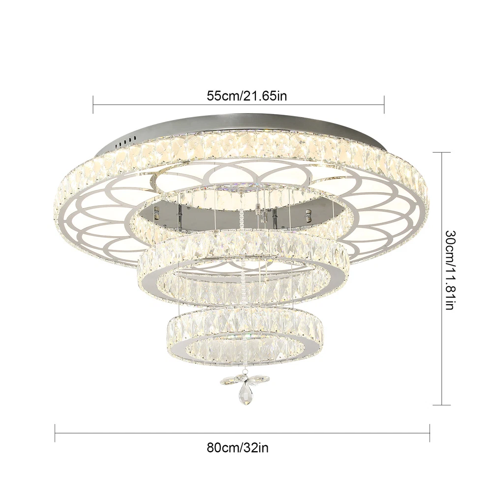 Specification Model: YL092 Color: White, Clear Material: Iron, Stainless Steel, Crystal Style: Modern Shape: Round Rated Voltage: 110-240V Rated Power: 80W Plug Type: US Standard Light Source Type: LED (Included) Light Color: White, Neutral, Warm Light Color Teperature: 3000K-4500K-6000K CRI: >85 Timing: 0.5h/1h Service Time: About 30000h Luminous Flux: 4550 Lumen Efficiency: A+ Brightness: From 5% to 100% (Stepless Adjustment) Battery Type: 2* AAA Batteries (Not Included) Control Method: Remote Control Mount Type: Ceiling Mount Applicable Area: 15-25m²/161.46-269ft² Maximum Remote Control Distance: 3m/9ft Number of LED Lights: 4 Assembly Required: Yes Product Height: 60cm/23.6inch Product Length: 80cm/32inch 4 Lights Luxury LED Round Crystal Chandelier Modern Large Foyer Ceiling Light US Product Description 32 inch Modern Large Crystal Chandelier Round Ring Dimmable Living Room Lamp US Specification Model: YL092 Color: White, Clear Material: Iron, Stainless Steel, Crystal Style: Modern Shape: Round Rated Voltage: 110-240V Rated Power: 80W Plug Type: US Standard Light Source Type: LED (Included) Light Color: White, Neutral, Warm Light Color Teperature: 3000K-4500K-6000K CRI: >85 Timing: 0.5h/1h Service Time: About 30000h Luminous Flux: 4550 Lumen Efficiency: A+ Brightness: From 5% to 100% (Stepless Adjustment) Battery Type: 2* AAA Batteries (Not Included) Control Method: Remote Control Mount Type: Ceiling Mount Applicable Area: 15-25m²/161.46-269ft² Maximum Remote Control Distance: 3m/9ft Number of LED Lights: 4 Assembly Required: Yes Product Height: 60cm/23.6inch Product Length: 80cm/32inch Description Bright and colorful lights can bring charm and warmth to your room, and light up your life. Made of premium iron, stainless steel, and crystal, this round crystal ceiling light is strong and durable. With 4 LED lights and a built-in intelligent driver, it can create bright light with great safety. It will be a great addition to your house. Key Features Stylish&Luxious Exterior: The clear crystal and glossy metal complement each other to create a sense of beauty. Meanwhile, the annular shape makes this product look very luxurious, making it a good decorative piece to blend in with different decor styles and add color to the space. Great Durability : The stainless steel i s rust-resistant wit h hi gh strength, good toughness, and good formability. The crystal with high transparency is heat-resistant, strong, durable, and no t easy to deform. Versatile Look: You can press the lockwire equipment on the chassis to adjust the length of the suspension wire and change the shape to be cross, parallel and inclined. Adjustable Working Time: Y ou can control its working hours in advance (0.5/1 hour), which can bring you great convenience. Safer to Use: With a built-in intelligent driver, it can provide constant current protection, overload protection, low voltage protection, and short circuit protection, which is safe and reliable. Stepless Dimming: This light has three light colors ( White/ Neutral /Warm Light ) with a color temperature of 3000K-4500K-6000K . Meanwhile, the brightness can be adju sted infinitely from 5% to 100% to meet different light needs. Large Applicable Area: The item can serve an area of 15-25m²/161.46-269ft² . So you can feel the illumination over a considerable area. Memory Function: It can automatically memorize the color and brightness of the lamp, and keep consistent when it is used next time, which can avoid frequent settings and save a lot of energy. LED Light Source: The product uses four eye-friendly LED lights with a CRI of more than 85 and high brightness, which is energy-saving without dazzling and flashing, and allows you to experience more natural and bright colors. It can be used for about 30000 hours, saving your use cost. Excellent Gift: The beautiful appearance and good practicality make it a great gift for parents, friends, and lovers on birthdays and holidays. Protective Packaging: This product comes in a custom foa m that resists compression and falls t o prevent product damage in transit. Guaranteed Customer Service: We aim to provide quality products and services. If you have problems, please feel free to contact us. We will reply and solve the problem for you as soon as possible. Details Remote Control: It allows you to remotely control the timing, brightness, light color, etc within 3m/9ft, saving you lots of effort. Round Base: It increases stress area, and can make the ceiling light fixed firm without falling easily. A pplication It is suitable for the living room, dining room, study bedroom, small bedroom, conference room, and other places of 15-25m²/161.46-269ft². Package Included 1* Round Crystal Ceiling Light 1* Remote Control 1* English Manual All Accessories for Installation Notes Please check the dimensions of the product before ordering to ensure it fits your home. Please wear electric insulation gloves and avoid scratching the surface of the lamp plate and the electric wire when installing. Please make sure that the power supply has been cut off before installation, and conduct a power test before installation. Please note that the remote control distance is 3m/9.84ft, please aim at the ceiling lamp when using it. Please use the lamp within the applicable voltage range and clean lamps regularly. Please cut off the power supply when you clean the light or replace light bulbs. Please note that the batteries for the remote control are not included in the package, you need to prepare two AAA batteries yourself. Please read the manual completely before installation, pay particular attention to the safety instructions included, and use the product in strict accordance with the instructions. Please allow the slight color difference caused by the shooting light and 1-3cm error due to manual measurement, and make sure you do not mind before ordering. Payment Delivery details Terms of sales About us Contact us Payment We accept ebay payment 