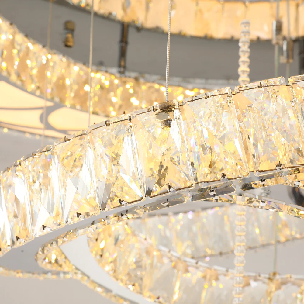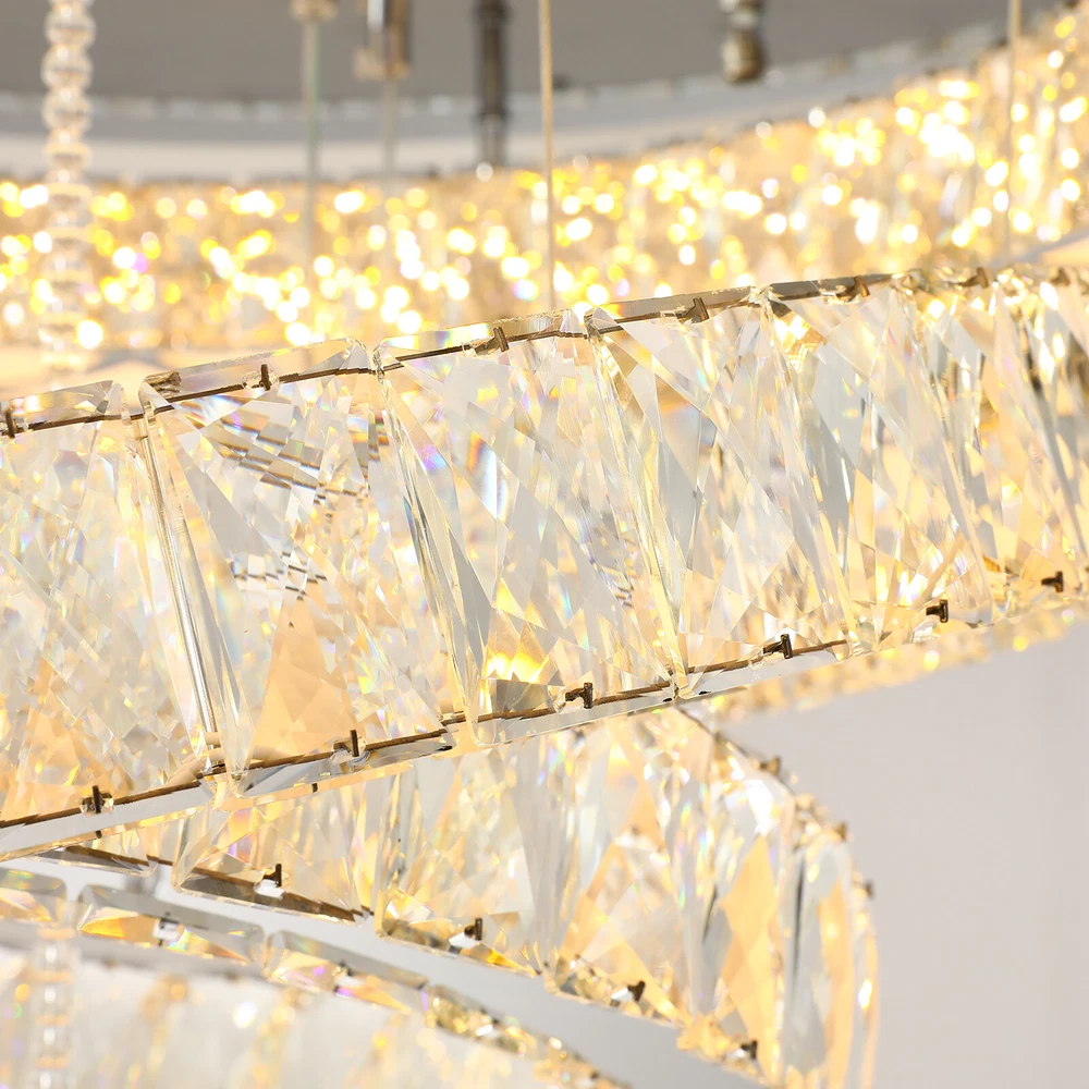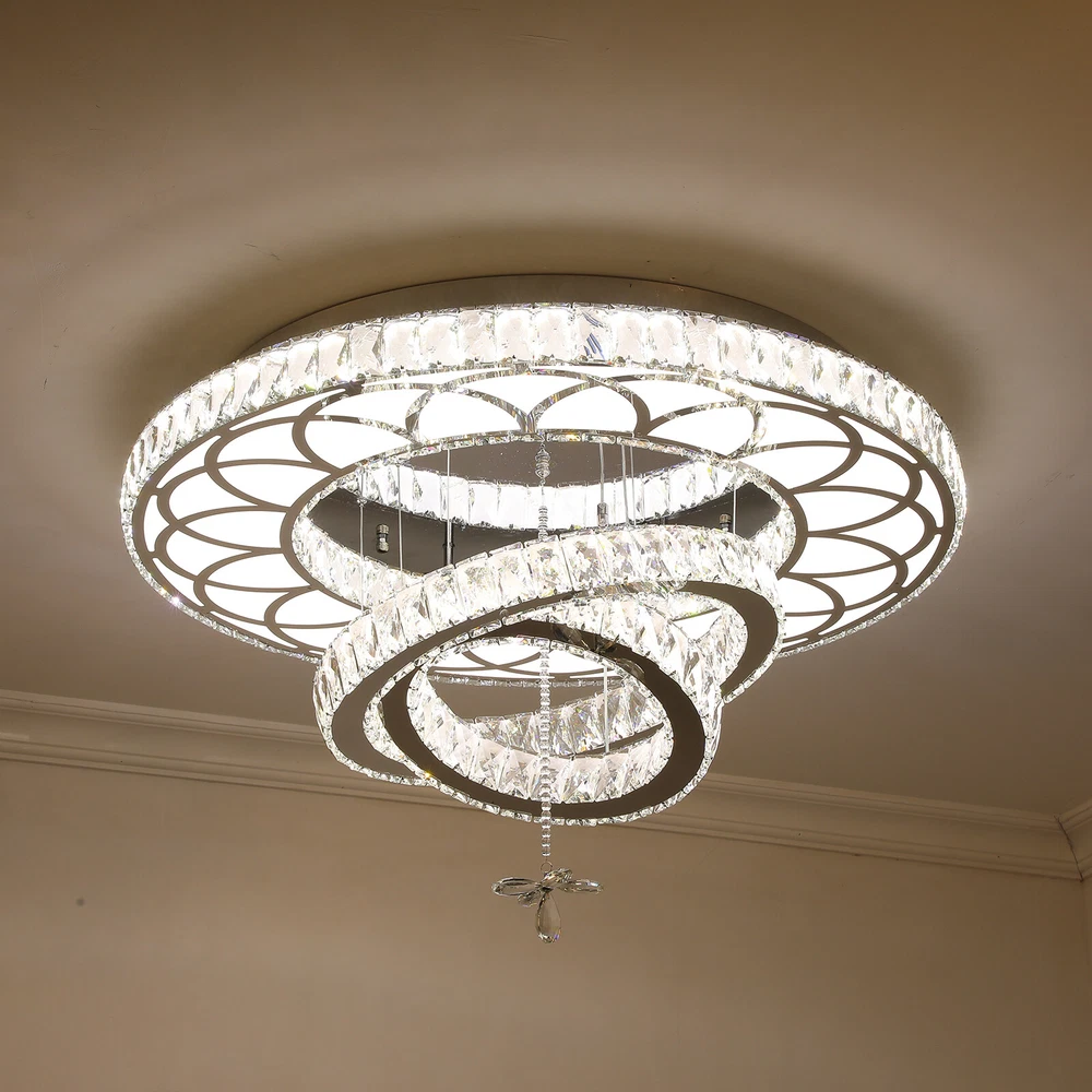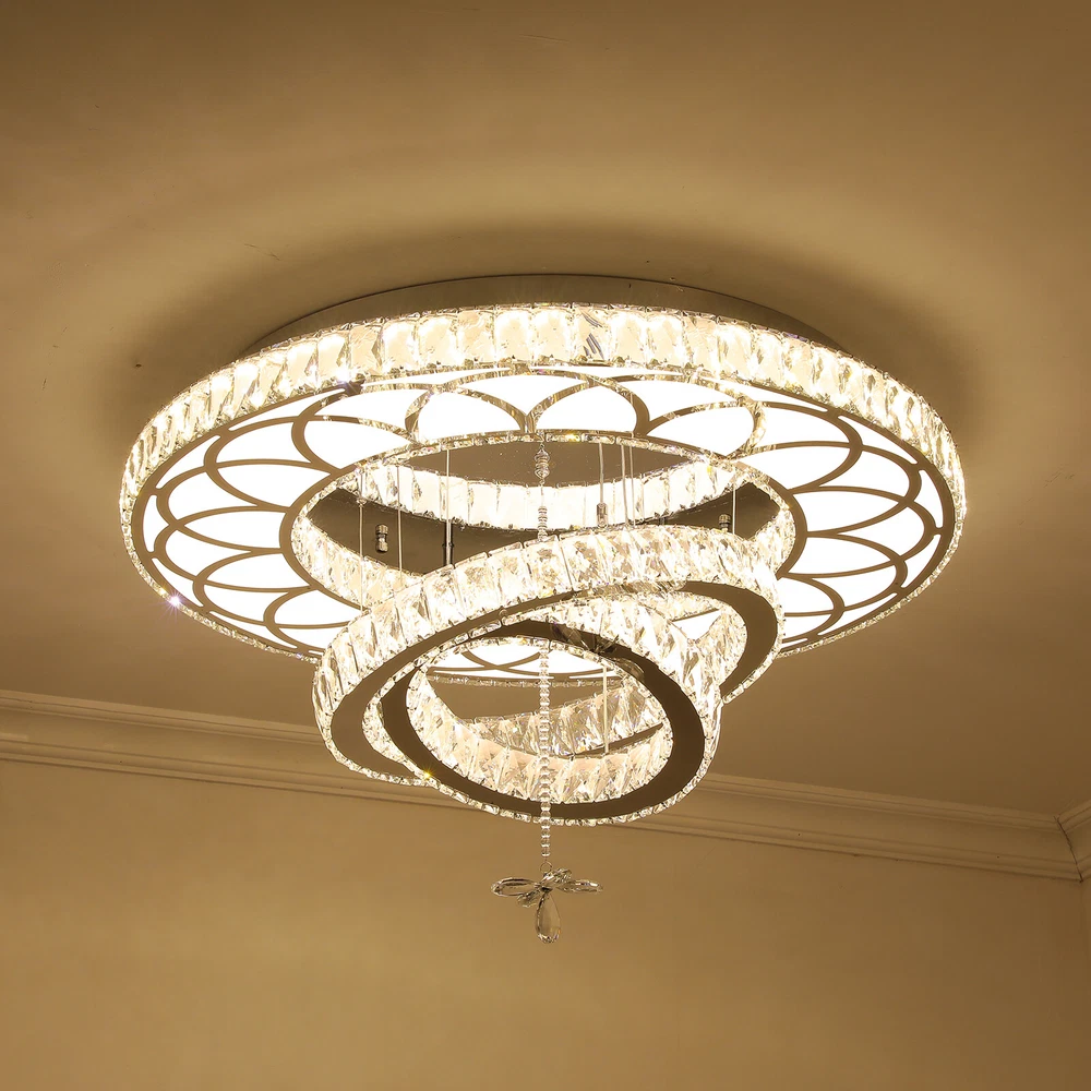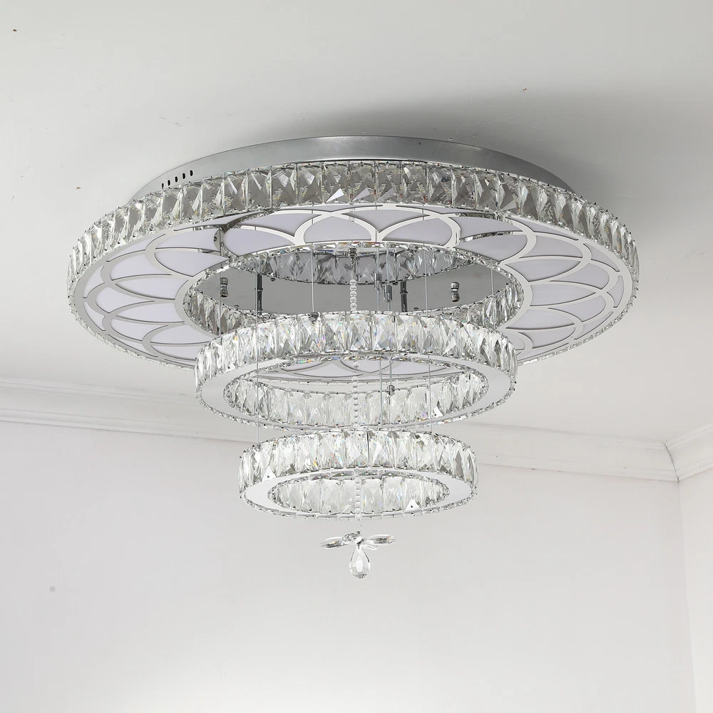Specification Model: YL092 Color: White, Clear Material: Iron, Stainless Steel, Crystal Style: Modern Shape: Round Rated Voltage: 110-240V Rated Power: 80W Plug Type: US Standard Light Source Type: LED (Included) Light Color: White, Neutral, Warm Light Color Teperature: 3000K-4500K-6000K CRI: >85 Timing: 0.5h/1h Service Time: About 30000h Luminous Flux: 4550 Lumen Efficiency: A+ Brightness: From 5% to 100% (Stepless Adjustment) Battery Type: 2* AAA Batteries (Not Included) Control Method: Remote Control Mount Type: Ceiling Mount Applicable Area: 15-25m²/161.46-269ft² Maximum Remote Control Distance: 3m/9ft Number of LED Lights: 4 Assembly Required: Yes Product Height: 60cm/23.6inch Product Length: 80cm/32inch 4 Lights Luxury LED Round Crystal Chandelier Modern Large Foyer Ceiling Light US Product Description 32 inch Modern Large Crystal Chandelier Round Ring Dimmable Living Room Lamp US Specification Model: YL092 Color: White, Clear Material: Iron, Stainless Steel, Crystal Style: Modern Shape: Round Rated Voltage: 110-240V Rated Power: 80W Plug Type: US Standard Light Source Type: LED (Included) Light Color: White, Neutral, Warm Light Color Teperature: 3000K-4500K-6000K CRI: >85 Timing: 0.5h/1h Service Time: About 30000h Luminous Flux: 4550 Lumen Efficiency: A+ Brightness: From 5% to 100% (Stepless Adjustment) Battery Type: 2* AAA Batteries (Not Included) Control Method: Remote Control Mount Type: Ceiling Mount Applicable Area: 15-25m²/161.46-269ft² Maximum Remote Control Distance: 3m/9ft Number of LED Lights: 4 Assembly Required: Yes Product Height: 60cm/23.6inch Product Length: 80cm/32inch Description Bright and colorful lights can bring charm and warmth to your room, and light up your life. Made of premium iron, stainless steel, and crystal, this round crystal ceiling light is strong and durable. With 4 LED lights and a built-in intelligent driver, it can create bright light with great safety. It will be a great addition to your house. Key Features Stylish&Luxious Exterior: The clear crystal and glossy metal complement each other to create a sense of beauty. Meanwhile, the annular shape makes this product look very luxurious, making it a good decorative piece to blend in with different decor styles and add color to the space. Great Durability : The stainless steel i s rust-resistant wit h hi gh strength, good toughness, and good formability. The crystal with high transparency is heat-resistant, strong, durable, and no t easy to deform. Versatile Look: You can press the lockwire equipment on the chassis to adjust the length of the suspension wire and change the shape to be cross, parallel and inclined. Adjustable Working Time: Y ou can control its working hours in advance (0.5/1 hour), which can bring you great convenience. Safer to Use: With a built-in intelligent driver, it can provide constant current protection, overload protection, low voltage protection, and short circuit protection, which is safe and reliable. Stepless Dimming: This light has three light colors ( White/ Neutral /Warm Light ) with a color temperature of 3000K-4500K-6000K . Meanwhile, the brightness can be adju sted infinitely from 5% to 100% to meet different light needs. Large Applicable Area: The item can serve an area of 15-25m²/161.46-269ft² . So you can feel the illumination over a considerable area. Memory Function: It can automatically memorize the color and brightness of the lamp, and keep consistent when it is used next time, which can avoid frequent settings and save a lot of energy. LED Light Source: The product uses four eye-friendly LED lights with a CRI of more than 85 and high brightness, which is energy-saving without dazzling and flashing, and allows you to experience more natural and bright colors. It can be used for about 30000 hours, saving your use cost. Excellent Gift: The beautiful appearance and good practicality make it a great gift for parents, friends, and lovers on birthdays and holidays. Protective Packaging: This product comes in a custom foa m that resists compression and falls t o prevent product damage in transit. Guaranteed Customer Service: We aim to provide quality products and services. If you have problems, please feel free to contact us. We will reply and solve the problem for you as soon as possible. Details Remote Control: It allows you to remotely control the timing, brightness, light color, etc within 3m/9ft, saving you lots of effort. Round Base: It increases stress area, and can make the ceiling light fixed firm without falling easily. A pplication It is suitable for the living room, dining room, study bedroom, small bedroom, conference room, and other places of 15-25m²/161.46-269ft². Package Included 1* Round Crystal Ceiling Light 1* Remote Control 1* English Manual All Accessories for Installation Notes Please check the dimensions of the product before ordering to ensure it fits your home. Please wear electric insulation gloves and avoid scratching the surface of the lamp plate and the electric wire when installing. Please make sure that the power supply has been cut off before installation, and conduct a power test before installation. Please note that the remote control distance is 3m/9.84ft, please aim at the ceiling lamp when using it. Please use the lamp within the applicable voltage range and clean lamps regularly. Please cut off the power supply when you clean the light or replace light bulbs. Please note that the batteries for the remote control are not included in the package, you need to prepare two AAA batteries yourself. Please read the manual completely before installation, pay particular attention to the safety instructions included, and use the product in strict accordance with the instructions. Please allow the slight color difference caused by the shooting light and 1-3cm error due to manual measurement, and make sure you do not mind before ordering. Payment Delivery details Terms of sales About us Contact us Payment We accept ebay payment 