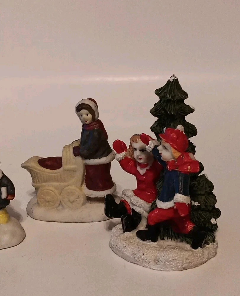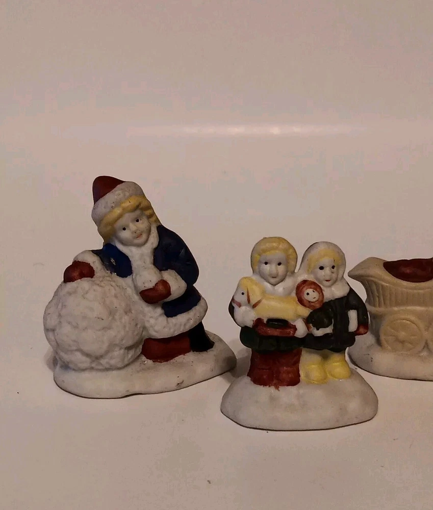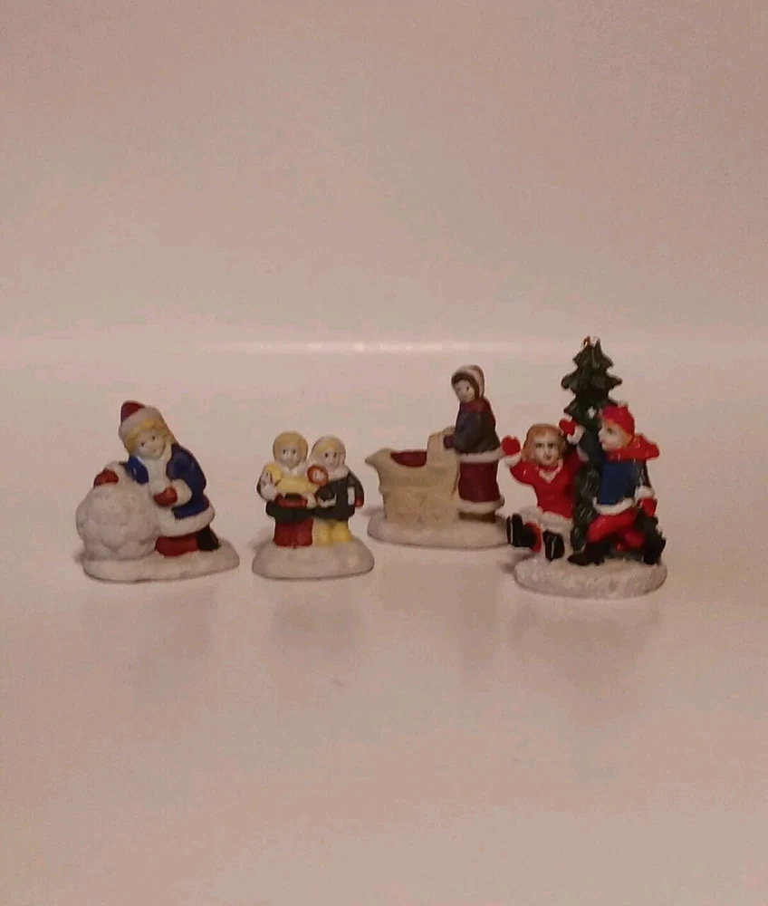 Add a touch of charm to your Christmas decor with these four miniature ceramic figurines. Crafted in China, these figurines are perfect for adding a festive touch to your holiday decor. Each figurine is painted with intricate details and is sure to become a treasured part of your collection. So why wait, add them to your collection today and enjoy their beauty for years to come! This is a pre-owned item with normal wear. See Pictures