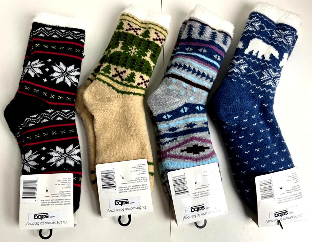 4 NEW Yuletide Cozy Socks Women's 5-10 Reindeer Snowflakes Polar Bear Lot Set