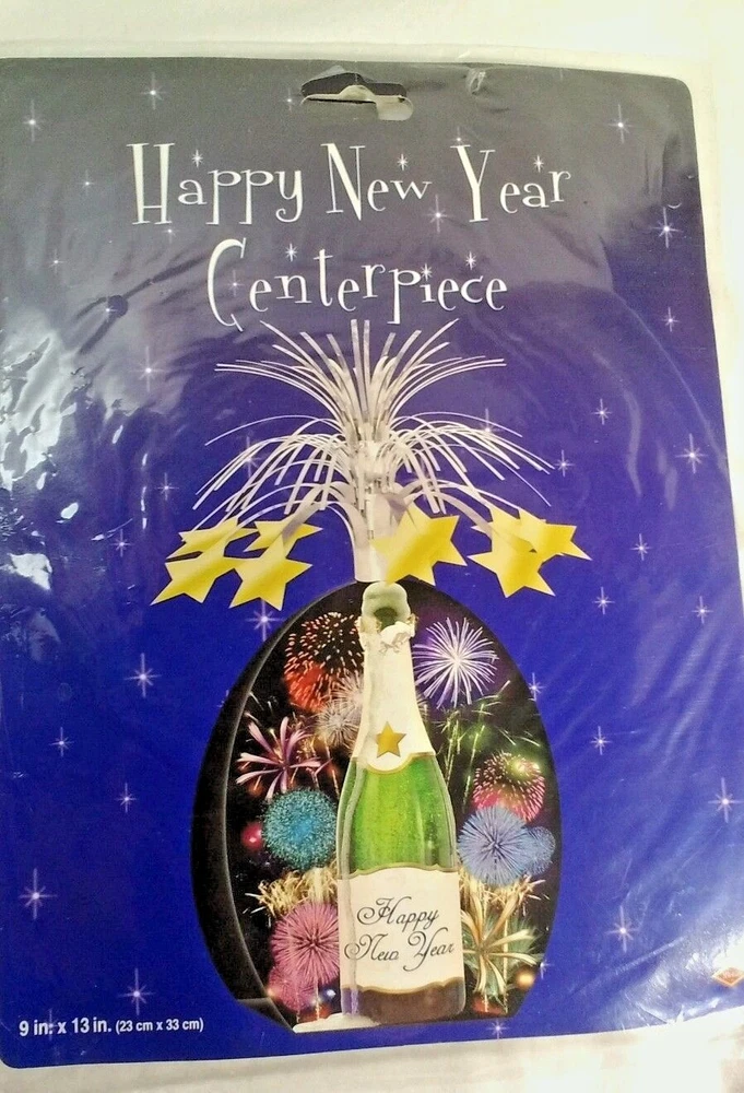 4 piece New Year's Party set 1 Happy New Year letter banner 1 Champaigne Centerpiece 2 cardboard double sided cut outs Color will vary lot #2 Auction Terms we gladly accept PayPal. If you have any questions, please ask before buying. All shipment receives delivery tracking with secure packing which is INSPECTED, bagged and sealed before I ship. Thanks for viewing my auction, aswe .
