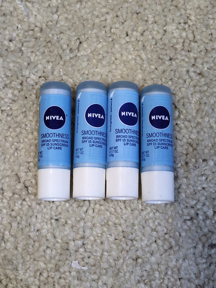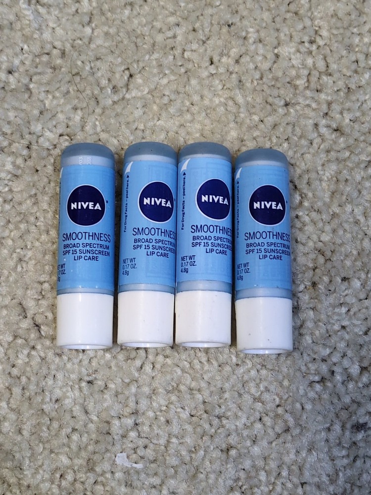 4 Nivea Smoothness Lip Care + Sunscreen Broad Spectrum SPF 15 4.8g Clear.