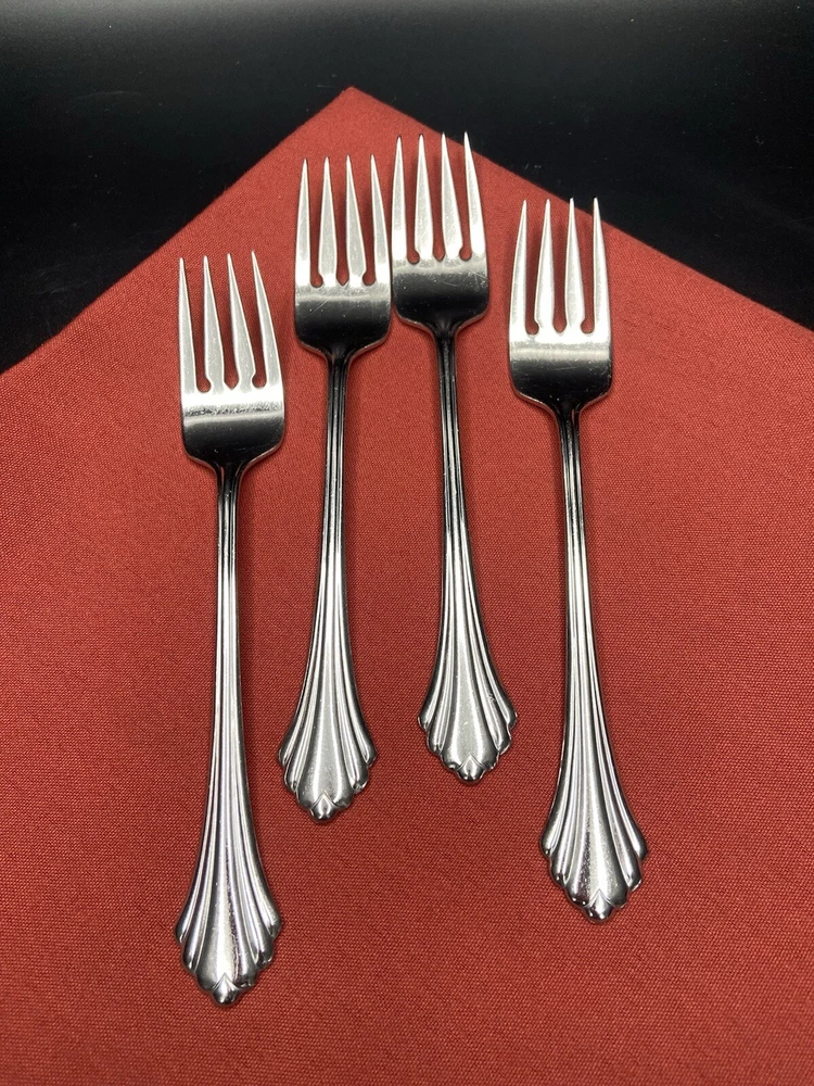 4 Oneida BANCROFT Stainless SALAD FORKS Flatware 6-3/4inches long