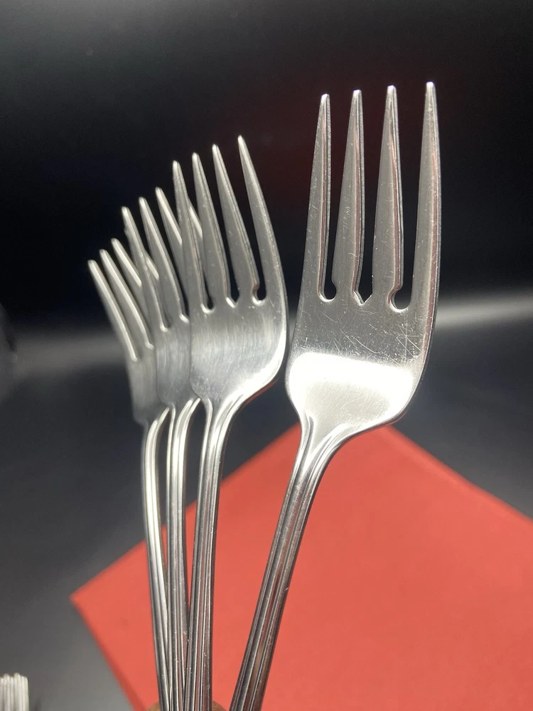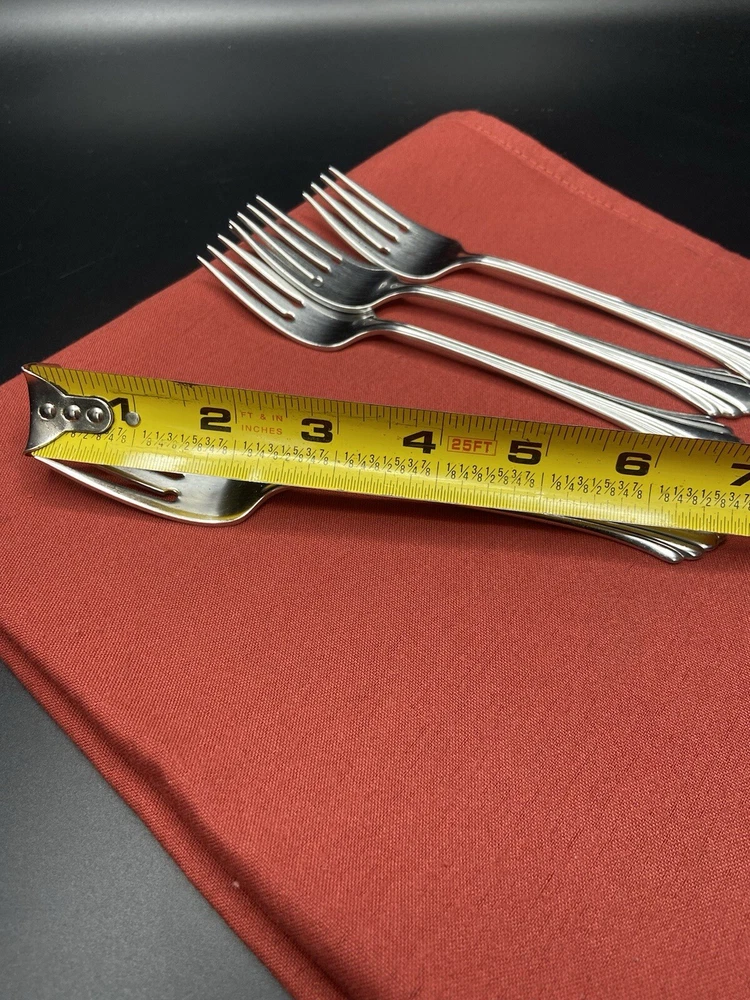 Listing is for 4 Oneida BANCROFT Stainless SALAD FORKS Flatware measuring approximately 6-3/4inches long. They are pre-owned with signs of normal wear such as surface scratches from use, cleaning and stacking. The forks weigh approximately 4 ounces without packaging material. Will package with great care and thank you kindly for your consideration. REASONABLE SHIPPING: Calculated shipping: Weight and distance based shipping via USPS Ground Advantage domestically USA from South Florida. USPS Ground Advantage is lowest shipping cost. Estimated delivery of 2-8 business days. Shipping costs is based on item(s) weight including packaging materials and the distance from the seller’s zip code to the buyer’s zip code. Buyers whose shipping address/zip code is in the East coast of USA tend to have higher shipping costs as distant is longer from seller’s South Florida zip code. Ships globally via Ebay International Shipping Delivery.