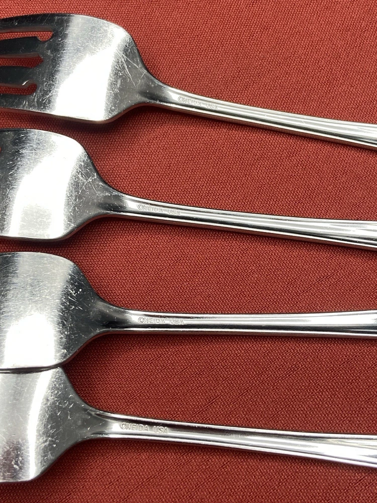 Item Length: 6.75 inches Brand: ONEIDA Type: Salad Fork Set Includes: Fork Material: Stainless Steel Finish: Glossy Pattern: Bancroft Country/Region of Manufacture: United States Handle Material: Stainless Steel Brand Line: Oneida USA Model: Bancroft Handle Pattern: Solid