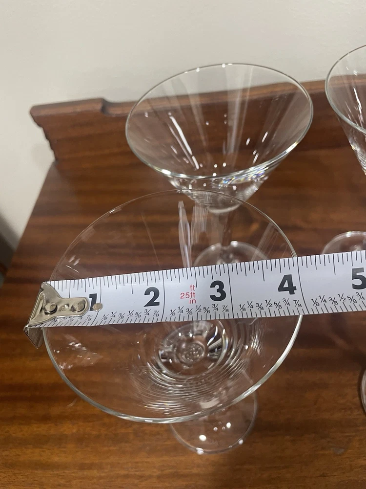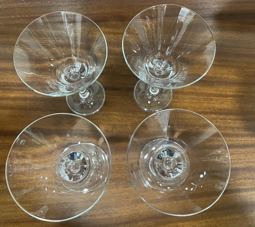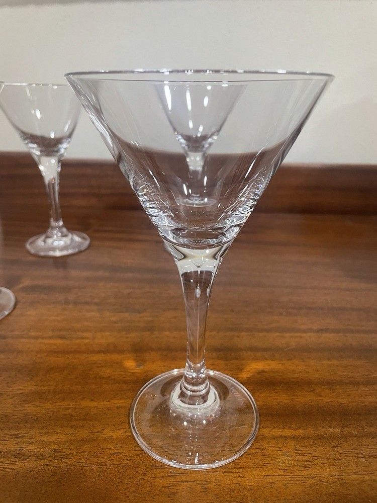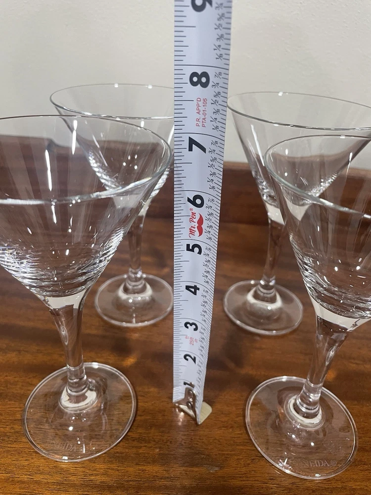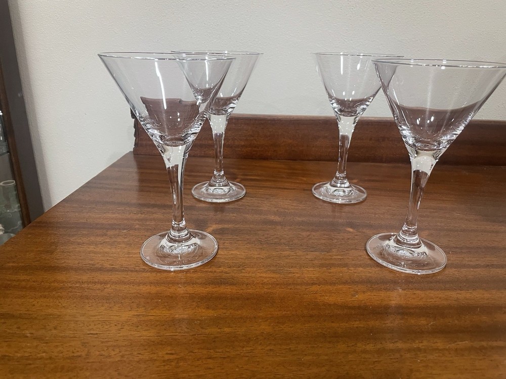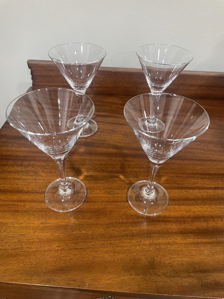 This set of four Oneida Crystal Martini Glasses stands at 6.75" tall and 4" wide, making them perfect for all occasions. The round shape and clear color add a touch of elegance to your drinkware collection. Made of crystal, these cocktail glasses are sure to impress any guest with their sleek design. The set includes four pieces, ideal for serving drinks to a small group of friends or family members. Perfect for adding a touch of sophistication to your home bar setup.