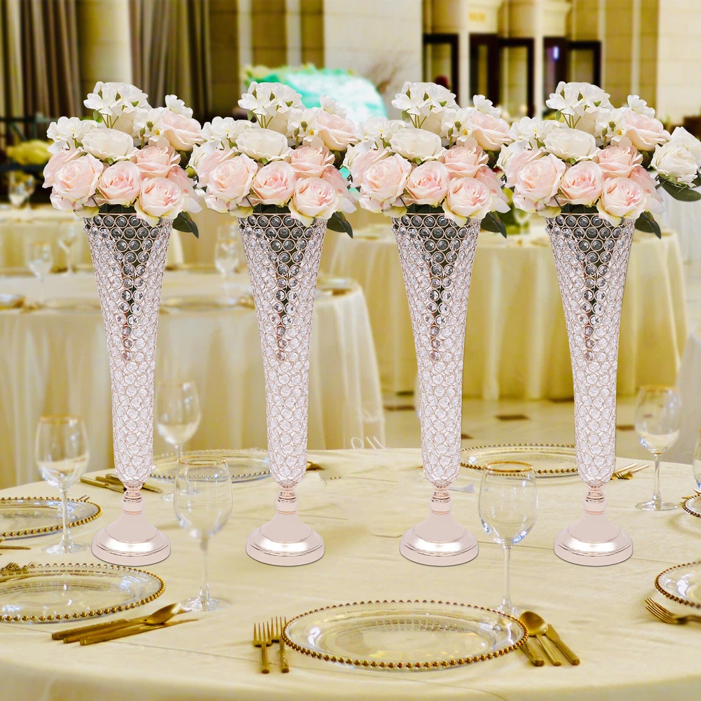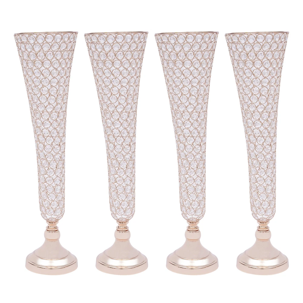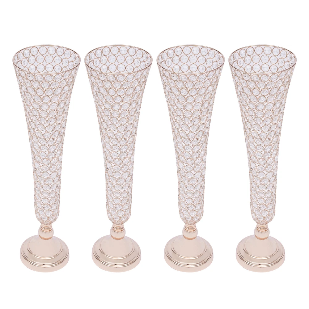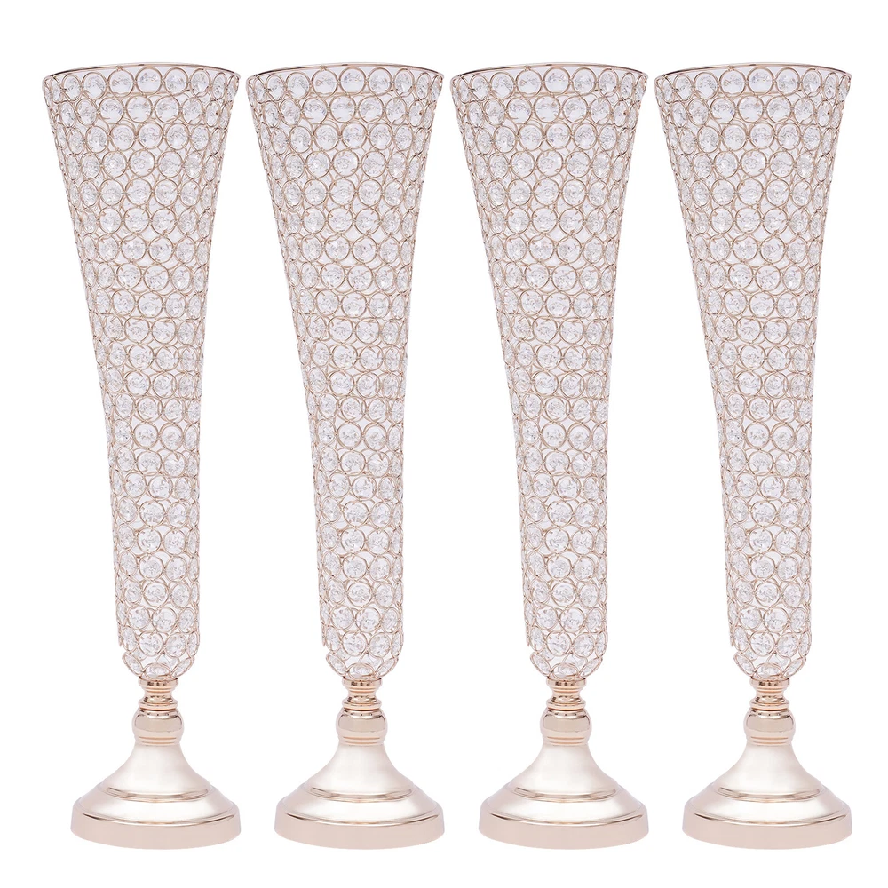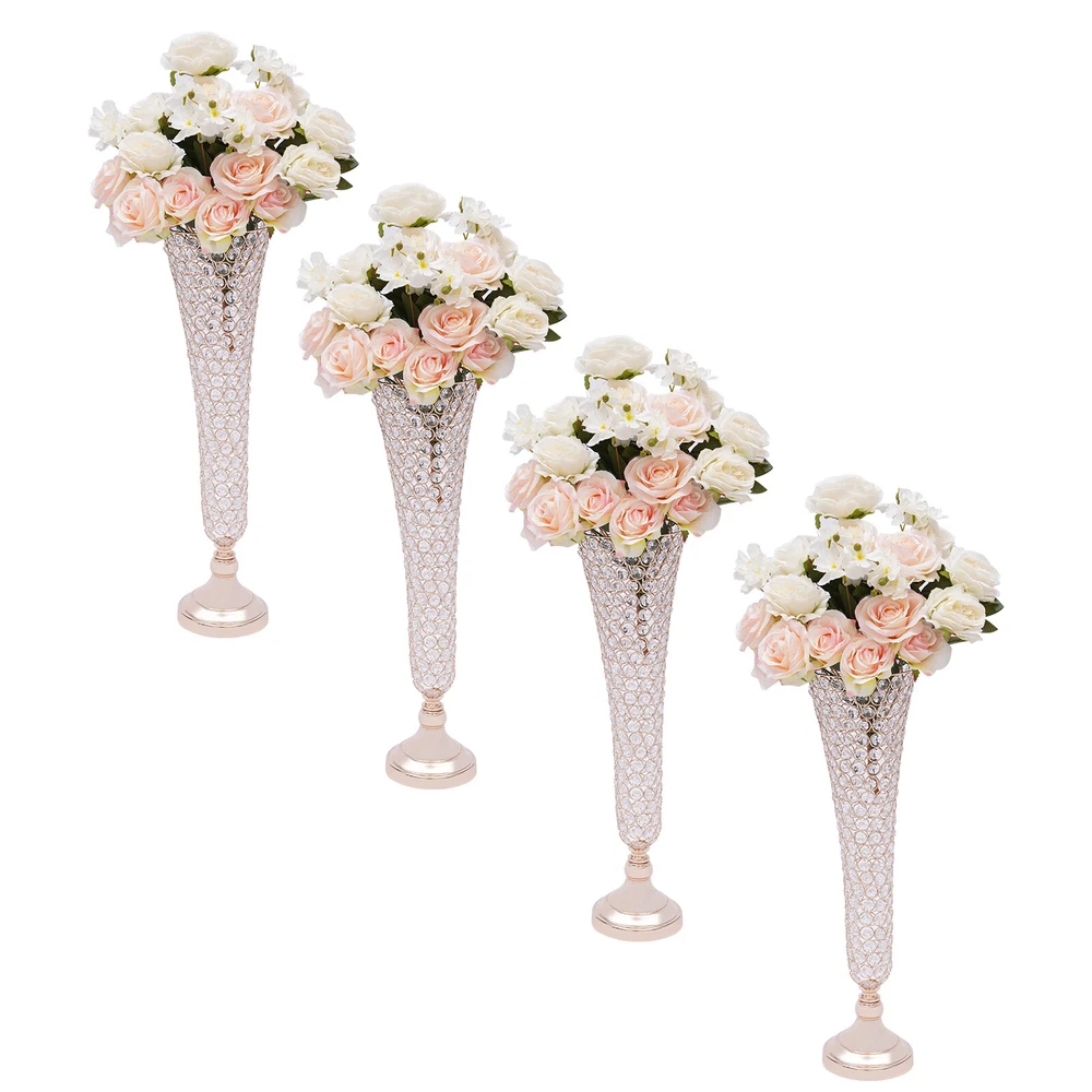 π Specification Model: 9701 Material: Iron+Machine-milled Crystal Surface Treatment: Electroplating Color: Gold Shape: Octagonal, Trumpet Number of Pieces: 4 Package Size: 50*30*18cm/19.7*11.81*7.09in Flower Vase Mouth Diameter:17cm/6.69in Base Diameter: 13.5cm/5.31in Flower Vase Height: 53cm/20.86in Gross Weight: 10kg/22.05lbs Net Weight: 9kg/19.84lbs π Details Anti-slip Pad: It has a black velvet anti-slip pad under the base to increase friction and reduce damage. Arc Mouth: Its mouth is designed with a smooth arc, so it is more beautiful and you don't have to worry about scratching your hands. π Package Included 4*Crystal Trumpet Floral Vases 4*Bases 4*Anti-slip Pads All Accessories for Assembly 4 PACK 21" Golden Flower Vase Wedding Centerpieces Crystals Trumpet Vase Decor π Description Brighten up dull wedding decorations, birthday centerpieces, party decorations, and dessert table decorations and impress your guests with your fabulous decorations - just use our alluring crystals trumpet floral vase. Each crystal sparkles in the sunlight, adding extra sparkle to make your wedding, party, or home even more luxurious! π Application It can be used in everyday decoration for the kitchen, living room, bedroom, office, balcony, etc. It can also add sparkle to your wedding banquets, proms, baby showers, anniversaries, Valentine's Day and other important events. π Specification Model: 9701 Material: Iron+Machine-milled Crystal Surface Treatment: Electroplating Color: Gold Shape: Octagonal, Trumpet Number of Pieces: 4 Package Size: 50*30*18cm/19.7*11.81*7.09in Flower Vase Mouth Diameter:17cm/6.69in Base Diameter: 13.5cm/5.31in Flower Vase Height: 53cm/20.86in Gross Weight: 10kg/22.05lbs Net Weight: 9kg/19.84lbs π Features Elegant and Luxurious Decoration : Each crystal trumpet floral vase is made of selected high-quality octagonal crystal beads. They still sparkle in the sunlight. It creates stunning colors and shades and is the ideal candelabra centerpiece wedding decoration. Simple Design : Its simple structure and crystal design will neither look monotonous nor steal the thunder from flowers and other decorations. It is ideal for decoration in any place. High Quality : It is made of high-quality iron material with an electroplated surface, so it has good weather resistance. It will not change its performance or shorten its service life due to the harsh environment. Easy to Clean : Its electroplated smooth surface and highly transparent crystal make it easier to clean. You just need to wipe it with a soft dry cloth to make it look new. The Right Height : The height of 20.86 inches makes it easier for people to notice the flowers on it. Whether you put it at the entrance or as a decoration on the sides of the wedding hall, it presents a better view for the audience. Enjoy DIY Fun : You can use it as you like with fresh seasonal flowers or artificial flowers, garlands and bouquets, thus allowing you to enjoy the DIY fun and create a unique scene. Four in a Package : The package comes with four crystal trumpet floral vases that can be placed symmetrically exactly where you want them. Therefore, you don't need to buy extra, which is very affordable and convenient. Easy to Assemble : It's simple to construct and the package contains the parts needed for installation, so you only need a few simple steps to put them together. Ideal Gift : This crystal trumpet floral vase has an elegant and unique design. It is an ideal gift for friends, colleagues, and family for birthdays, and housewarmings. π Details Anti-slip Pad : It has a black velvet anti-slip pad under the base to increase friction and reduce damage. Arc Mouth : Its mouth is designed with a smooth arc, so it is more beautiful and you don't have to worry about scratching your hands. π Package Included 4*Crystal Trumpet Floral Vases 4*Bases 4*Anti-slip Pads All Accessories for Assembly π Notes Please note that the flowers are not included in the package. Please allow the slight color difference caused by the shooting light and 1-3cm error due to manual measurement, and make sure you do not mind before you order. Payment Delivery details Terms of sales About us Contact us Payment We accept ebay payment γ Fees such as import duties, taxes are not included in the item price or shipping costs. These charges are the buyer's responsibility. Delivery details Shipping: 2-9 working days to: USA Terms of sales We maintain high standards of excellence and strive for hundred percent customer satisfaction. Feedback is very important to us. We hope that you contact us immediately before you give neutral or negative feedback, so that we can address your concerns. It is impossible to address issues if we do not know about them! About us Your satis faction is our ultimate goal. We work hard to earn your trust and future business. Our certified technicians have tested each item before shipping. The unit comes with 1 year limited warranty on all manufacturing defects. a) If you receive a defective item, you may return it or ask for a discount. Please contact us within 14 days after you receive the package. b) What you returned must be intact and in its original packaging as re? u. Customer is responsible for shipping costs of the returned item. c) We will cover the cost of shipping back t with the shipping rate indicated in the registration page. We will send you a new unit or refund the full payment you paid. Thank you. Contact us Business Hour Business Hour: Monday To Friday: 8:30 AM to 5:00 PM (Beijing China time) Due to time zones, our reply to your questions may not be immediately. But within above working time, we will reply your email within 24 hours. If it's non-workdays, please kindly be patient and wait till Monday. Please contact us with ebay message. Please feel free to contact us if you have any questions. Monday To Friday: 8:30 AM to 5:00 PM (Beijing China time) Due to time zones, our reply to your questions may not be immediately. But 