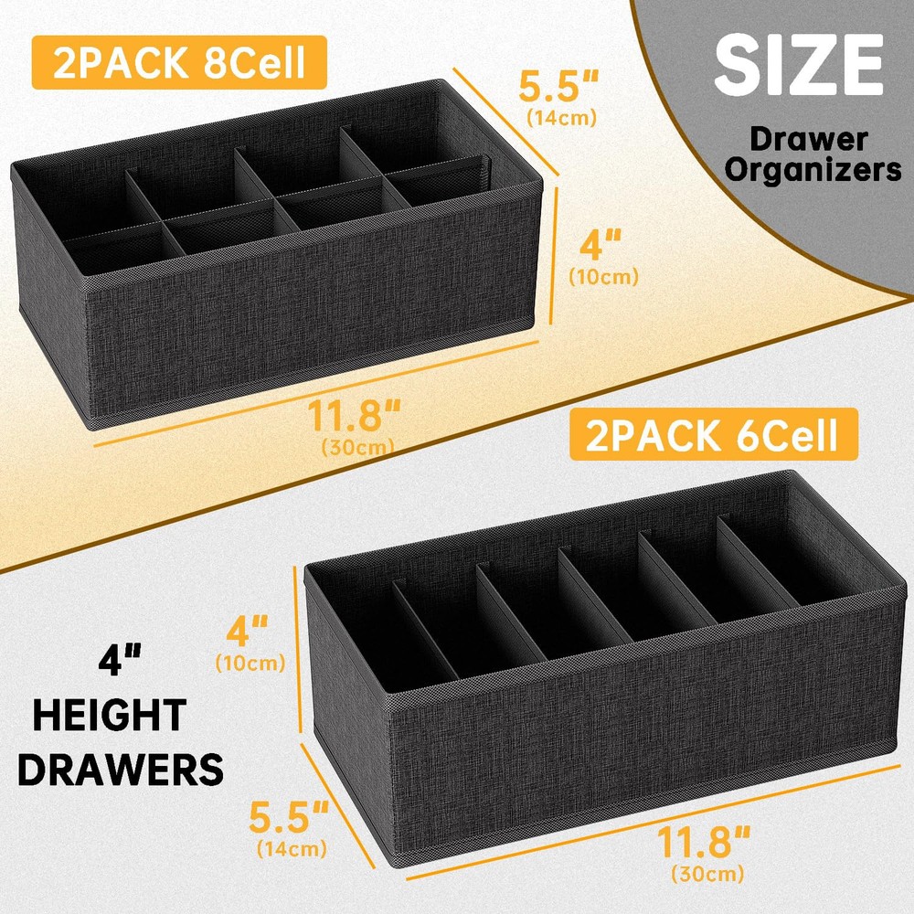 Made with high-quality materials, this sock and underwear organizer is durable and built to last. Efficient dresser drawer organizer for socks, underwear, belts, and other clothes, maximizing your storage space. Designed with dividers to separate different items, ensuring a clutter-free and organized sock and underwear drawer. Closet cabinet organizer that keeps your bras, ties, and leggings neatly organized and easily accessible. 4 PACK underwear and sock organizer for drawer, providing the best storage solution for socks and underwear.