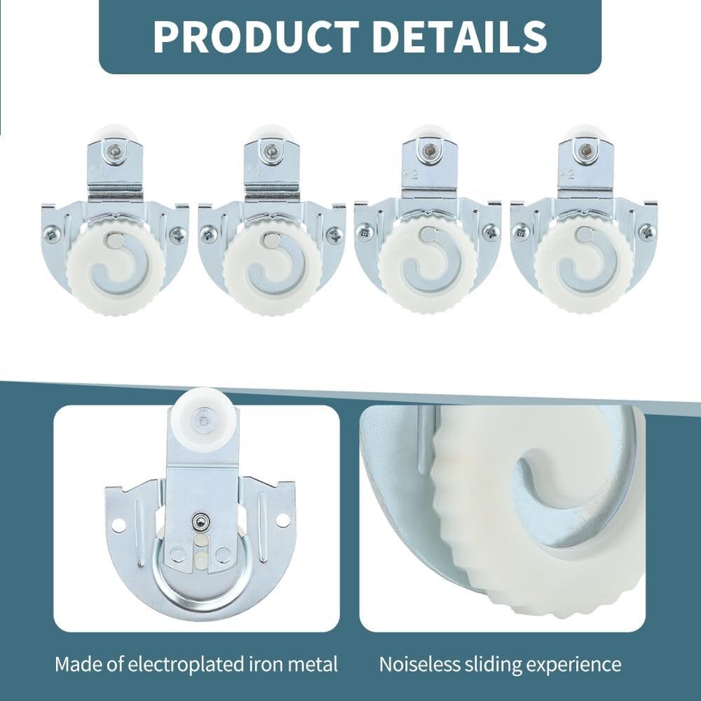 Free eBay listing template designed by dewiso.com 4 PCS Sliding Closet Door Roller, Sliding Wardrobe Door Hardware Roller Kit Upgrade Bearings Top-Roller Set Sliding Door Hangers Adjustable Door Hooks with 8 Screws FREE AND FAST SHIPPING! 【REPLACEMENT PART】The sliding door roller can be used to replace your old or broken, poorly functioning rollers, providing your closet door with a smooth, noiseless sliding experience, more comfortable and more convenient. 【DURABLE MATERIAL】This sliding closet door roller is made of electroplated iron metal and plastic material, high strength, wear resistance, durability, solid structure, stable and not easy to break, long service life. 【WIDE APPLICATION】Suitable for doors from 3/4" to 1-1/4" thick, suitable for most doors, can be used in wardrobes, bedrooms, closets, kitchens and other scenes. Please refer to the detailed dimensions before purchasing to ensure they fit your door. 【PACKAGE CONTENT】You will receive 4pcs silver sliding closet door rollers(includes 2 types, roller 1 and roll 2, each 2pcs) and 8pcs 18mm/0.71inch screws. Roller outside diameter about 2.2cm/ 7/8 inch. Offset width roller 1: 0.95cm/ 3/8 inch, roller 2: 0.44cm/ 1/8 inch. 【EASY TO INSTALL】Each door roller hardware has 2 pre-drilled holes, and comes with mounting screws, the installation process is simple and easy, not easy to fall off after installation, and can fit the closet door accurately. › Product We offer a 30-Day Return Policy on items which you are not completely satisfied with. You have the option for a full-refund or an exchange of the item. No returns are available on items shipped outside of the US . Shipping We offer Free Shipping to the US and ship within 2 business days of payment, usually sooner. We use UPS express shipping. That's why your products are usually delivered within 3 days . Contact We try our very best to make sure every customer is completely satisfied. If there's a problem , message us! We're happy to help. 24/7 live chat available.