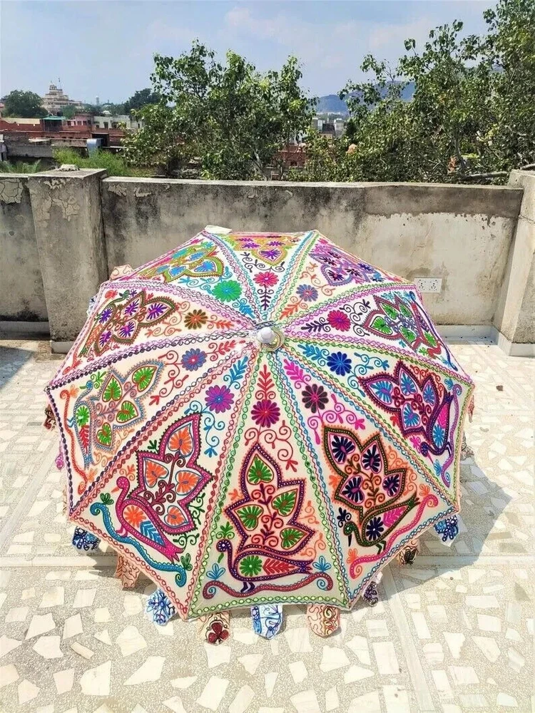 The buyer can choose any combinaton of umbrella, can pick same umbrella or different umbrella if buying more than one, feel free to contact PLEASE This is a Multicolored Hand Embroidered Garden Umbrella. A suitable Parasol to fill up your Garden with Colors, also used for Decoration purpose in Weddings, Events and in Patios. ๐๐๐๐๐๐ ๐ ๐๐๐ ๐ ๐๐๐ ๐๐ ๐๐๐๐๐๐๐ ๐๐ ๐๐๐ ๐๐๐๐ ๐๐๐๐๐๐๐๐๐ ๐๐๐๐ ๐๐๐ ๐๐๐๐๐ ๐๐ ๐๐๐ ๐๐๐๐๐๐๐, ๐๐ ๐๐๐๐๐ ๐๐๐๐๐๐ ๐ ๐๐๐๐๐, ๐'๐กรฉ๐ฌ๐ข๐ญ๐๐ณ ๐ฉ๐๐ฌ ร ๐ง๐จ๐ฎ๐ฌ ๐๐จ๐ง๐ญ๐๐๐ญ๐๐ซ ร ๐ญ๐จ๐ฎ๐ญ ๐ฆ๐จ๐ฆ๐๐ง๐ญ ๐๐จ๐ง๐๐๐ซ๐ง๐๐ง๐ญ ๐ฅ๐ ๐ญ๐๐ข๐ฅ๐ฅ๐ ๐๐ญ ๐ฅ๐ ๐ฉ๐ซ๐ข๐ฑ ๐๐ ๐ฅ๐ ๐ฉ๐๐ง๐ญ๐จ๐ฎ๐๐ฅ๐, ๐ง๐จ๐ฎ๐ฌ ๐ซรฉ๐ฉ๐จ๐ง๐๐จ๐ง๐ฌ ๐๐๐ง๐ฌ ๐ฅ๐๐ฌ ๐ ๐ก๐๐ฎ๐ซ๐๐ฌ. ๐๐๐ ๐๐๐๐๐๐๐ ๐ ๐๐๐๐๐๐๐๐๐๐๐ ๐๐ ๐๐๐๐๐๐๐๐๐ ๐๐๐๐๐๐๐ ๐๐๐ ๐๐๐๐๐๐ ๐๐๐๐๐๐๐๐ ๐๐ ๐๐๐๐๐๐ ๐ ๐๐ ๐๐๐๐๐๐ ๐๐๐๐๐ ๐๐๐๐๐๐ ๐๐๐, ๐๐๐๐๐๐๐๐๐๐๐ ๐๐๐๐๐ ๐ ๐๐๐, ๐๐ข๐ญ๐ญ๐ ๐ค๐จ๐ง๐ญ๐๐ค๐ญ๐ข๐๐ซ๐๐ง ๐๐ข๐ ๐ฎ๐ง๐ฌ ๐ฃ๐๐๐๐ซ๐ณ๐๐ข๐ญ ๐๐๐ณรผ๐ ๐ฅ๐ข๐๐ก ๐๐๐ซ ๐๐ซรถร๐ ๐ฎ๐ง๐ ๐๐๐ฌ ๐๐ซ๐๐ข๐ฌ๐๐ฌ ๐๐๐ฌ ๐๐ฅ๐ข๐ฉ๐ฉ๐๐ซ๐ฌ. ๐๐ข๐ซ ๐๐ง๐ญ๐ฐ๐จ๐ซ๐ญ๐๐ง ๐ข๐ง๐ง๐๐ซ๐ก๐๐ฅ๐ ๐ฏ๐จ๐ง ๐ ๐๐ญ๐ฎ๐ง๐๐๐ง. ๐๐๐๐ ๐๐ ๐๐๐๐ ๐๐ ๐๐๐ ๐๐๐ ๐๐๐๐๐๐ ๐๐๐๐๐๐๐ ๐๐๐ ๐๐๐ ๐๐ ๐๐ ๐๐๐๐๐ ๐๐๐๐ ๐๐ ๐๐๐๐๐๐๐ ๐๐ ๐๐๐๐๐ ๐๐๐ ๐๐ ๐๐๐๐๐๐๐, ๐๐๐ ๐๐๐๐๐๐๐๐๐๐ ๐๐๐๐๐๐ ๐ ๐๐๐, Diametric Size: 72 Inches Color: Multicolor Height: 90" approx. with Pole (The Pole is in Two Parts one is 45" approx. and another one is 45" inches approx. and they Joined together for height adjustment) Material: Cotton Fabric, Metal Frame, Thread, Embroidery, Sequins like Mirror and love :) Usage: For Wedding, Beach, Housewarming, Pool, Garden, Cafe, Bar, Boho Decor or any other Event and Party supplies, you can also use it as Patio, Deck or Lawn Sunshade Parasol Umbrella to make your space look more Beautiful. Packaging: Box Package contains 1 Pc Large Umbrella, Fold-able Part to stand Outer Fabric Material: 100% Cotton Fabric. Work: Handcrafted Thread Embroidery & Sequence Work like Mirror. This Indian Handmade Jaipuri Embroidery Work Umbrella Bored with the regular Multicolor umbrella! This Ethnic Handmade umbrella made up of cotton cloth is essential for the approaching summer season. Prepared by traditional artisans. of Jaipur the exclusive design is decorated with the sparkling beads work on the top of the umbrella and finished with Aari tari lace and Sitara or beads work