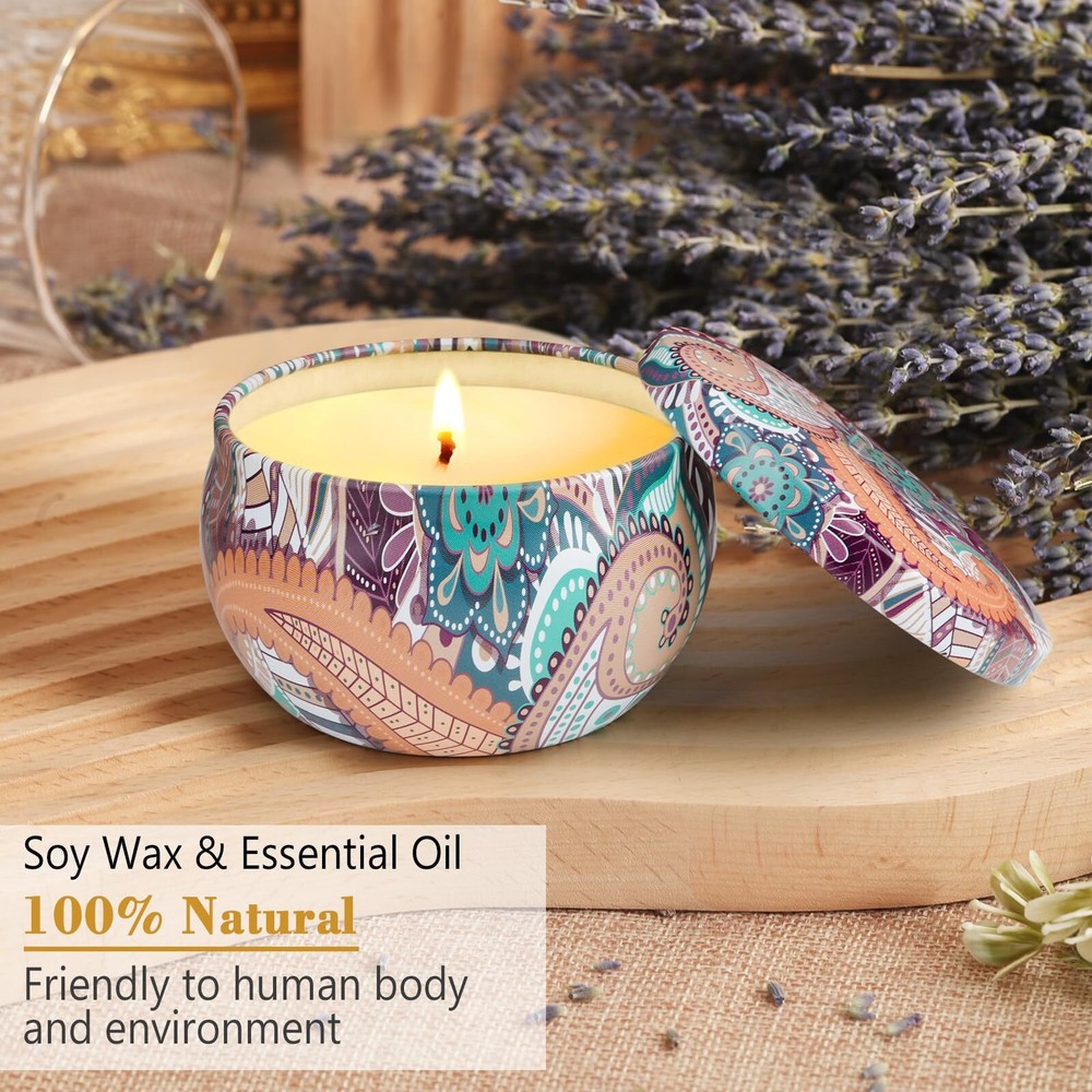 Scented Candles Box Set : Home scented candles gifts come with 4 pack aromatherapy,using elegant art style, suitable for women, mother, girlfriend, wife, mom, grandmother, daughter; scented candles set gifts for Mothers Day, Valentine's Day, Birthday, Anniversary, ,Christmas Day, and Thanksgiving 4 Pack Scented Candles Set : Scented candles set gifts of 4 kinds of different scents,Bergamot, Sage & Sea Salt, Lemon and Gardenia,which can enjoy valentine's day time with your lover Long-Lasting Burning and Rich Fragrance : Candles is 2.5 oz per jar can, the 4 pack candles for home scented can last 100 hours burning time, can put it for home, bedroom, bathroom, or desk; used to cover up any home peculiar smell Natural Soy Wax : Aromatherapy Candles gifts for women are made from pure soy wax with essential oil and an all-natural wick without artificial dyes or coloring and burn smoke-free. Soy wax candles have many benefits, including long use time, which can create a good atmosphere and bring home warmth Suitable for Various Occasions : Each scented Soy Wax candle holiday gifts has a jar with exquisite artistic patterns, suitable for decorating your house or storing small things after use. For example, jewelry earrings or decorative storage container flower pots. This jar of scented candle is the best choice for spa, yoga studio, bedroom, bathroom, table decoration and lighting