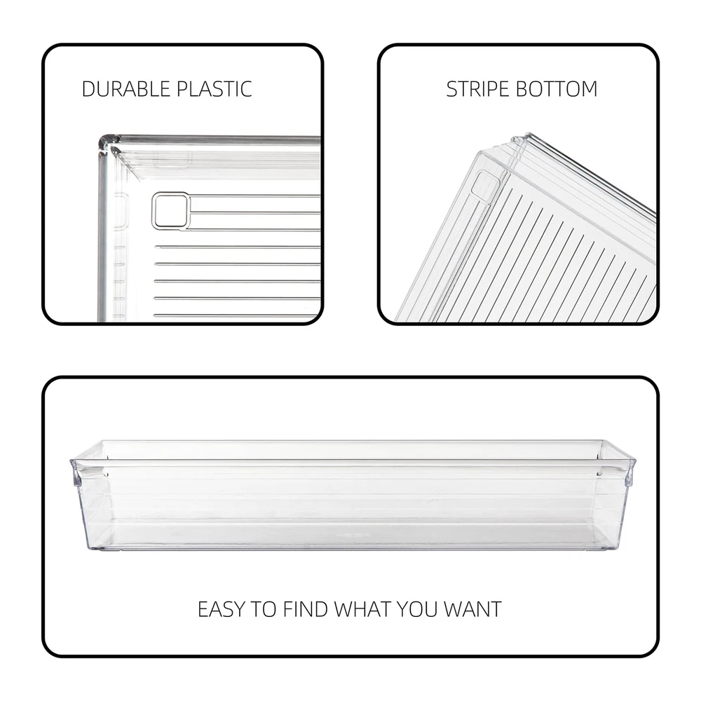 4 Pack 12"x 6" Large Size Clear Plastic Desk Drawer Organizer Tray Bathroom O...