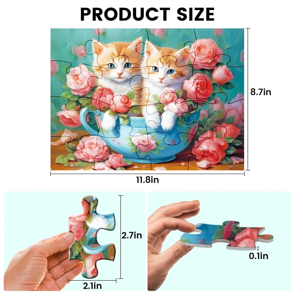 DEMENTIA PUZZLES FOR SENIORS SET INCLUDES: 4-piece puzzle of 16 pieces each. Puzzles measure approximately 11.8 x 8.7 x 0.1 inches and include 4 x puzzles, 4 x 1:1 instructional originals, 4 x folio bags, and a box. Designed to provide the best combination of challenge, interest and engagement for people living with dementia and Alzheimer's. COGNITIVE GAMES FOR ELDERLY: Highly saturated colors stimulate vision and improve visual perception in older adults, making it a great source of entertainment for seniors and can create lasting memories and strengthening your bond. MULTI-SENSORY EXPERIENCE: Our large piece puzzles have a unique texture and an extra-thick 0.1 in design, while providing a firm grip that won't fall off. This design is particularly beneficial for older individuals with dexterity challenges. ECO-FRIENDLY AND DURABLE: We strongly believe in protecting the world we love. That's why our puzzles are made from thick, sturdy recycled paper that is not only easy to clean and use multiple times, but also protects our environment. PERFECT GIFT: Looking for gifts for seniors? Our jigsaw puzzles make thoughtful gifts for seniors, whether they have dementia or are looking for a fun and rewarding pastime. (Product packaging does not contain the words "dementia" or "Alzheimer's disease")