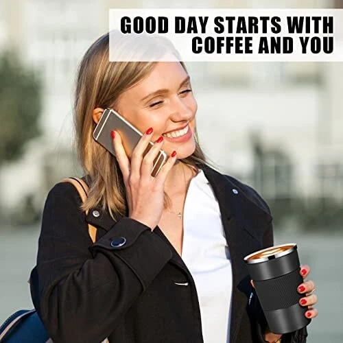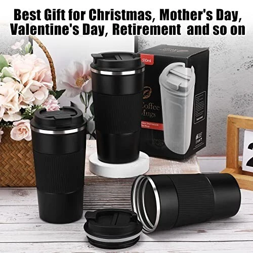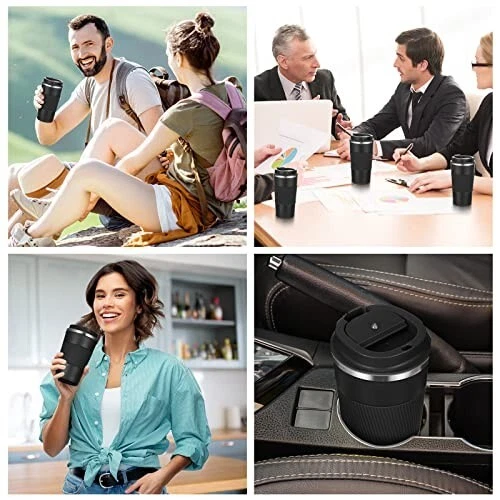 Insulated Travel Tumbler - Double Stainless Steel Double Stainless Steel Construction: Our insulated travel tumbler is crafted from high-quality stainless steel, ensuring durability and sturdiness. Featuring a double insulation design, it keeps your drinks hot or cold for extended periods, making it a safe choice for both children and adults. It's the perfect companion for hot summers or chilly winters. Leakproof Travel Coffee Cup: Designed with a spiral side, this insulated coffee mug includes sealing rings for effective leakproof travel. Shake the mug without fear of spills, keeping your travel or office bag dry. The clamshell opening allows for easy one-handed drinking, whether you're walking or driving. The spout size ensures no spills during emergencies. Non-Slip Silicone Layer: The bottom of this stainless steel coffee travel cup features silicone pads to prevent sliding and protect furniture from scratches. A silicone layer in the middle provides a secure grip, preventing accidental drops. With a bottom diameter of 2.76 inches (7 cm), it's specially designed to fit car cup holders. Widely Applicable: With a 16 oz capacity, this coffee vacuum tumbler is versatile enough for coffee, wine, vodka, whiskey, ice cream, tea, water, juice, cola, beer, and cocktails. Suitable for both indoor and outdoor settings such as backyards, pools, terraces, picnics, parties, camping, cruising, and travel. Abundant Quantity: Receive a total of 4 black vacuum mugs to meet your daily use and replacement needs. Perfect for sharing with friends and family during festivals or events. Easy to clean by rinsing with water or a mild cleaner; machine washing is not recommended to maintain the powder coating and insulation properties.