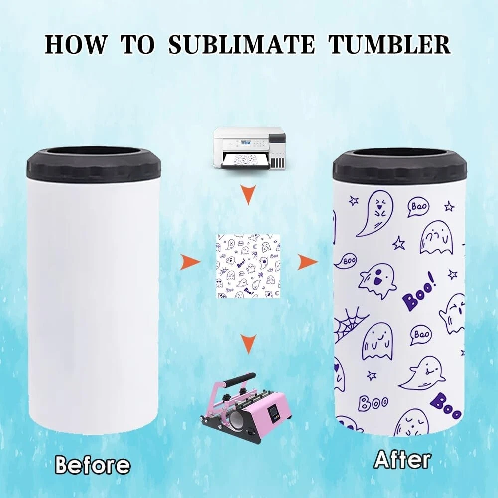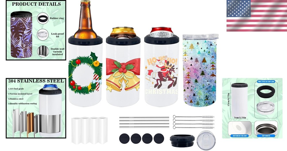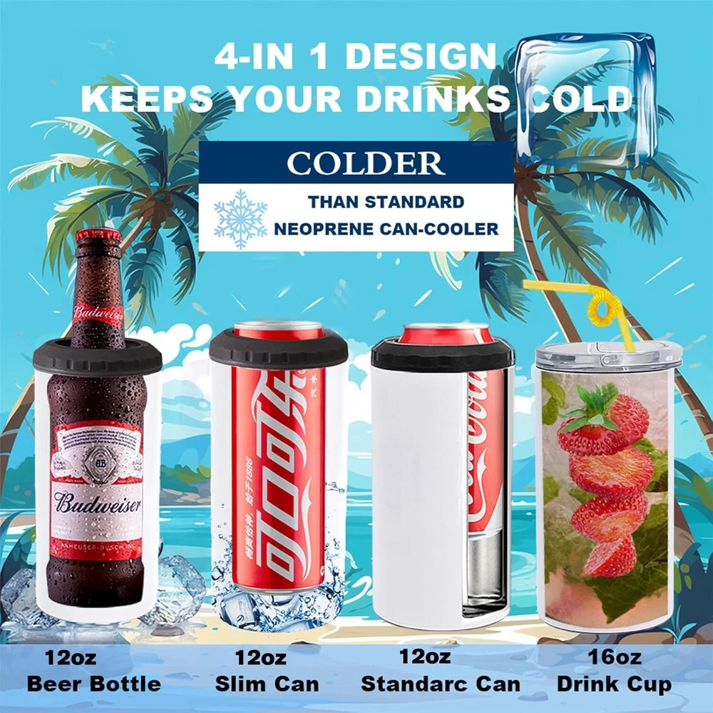 4 Pack 16oz Sublimation Can Coolers with Straws and Coasters - DIY Customizable Gifts