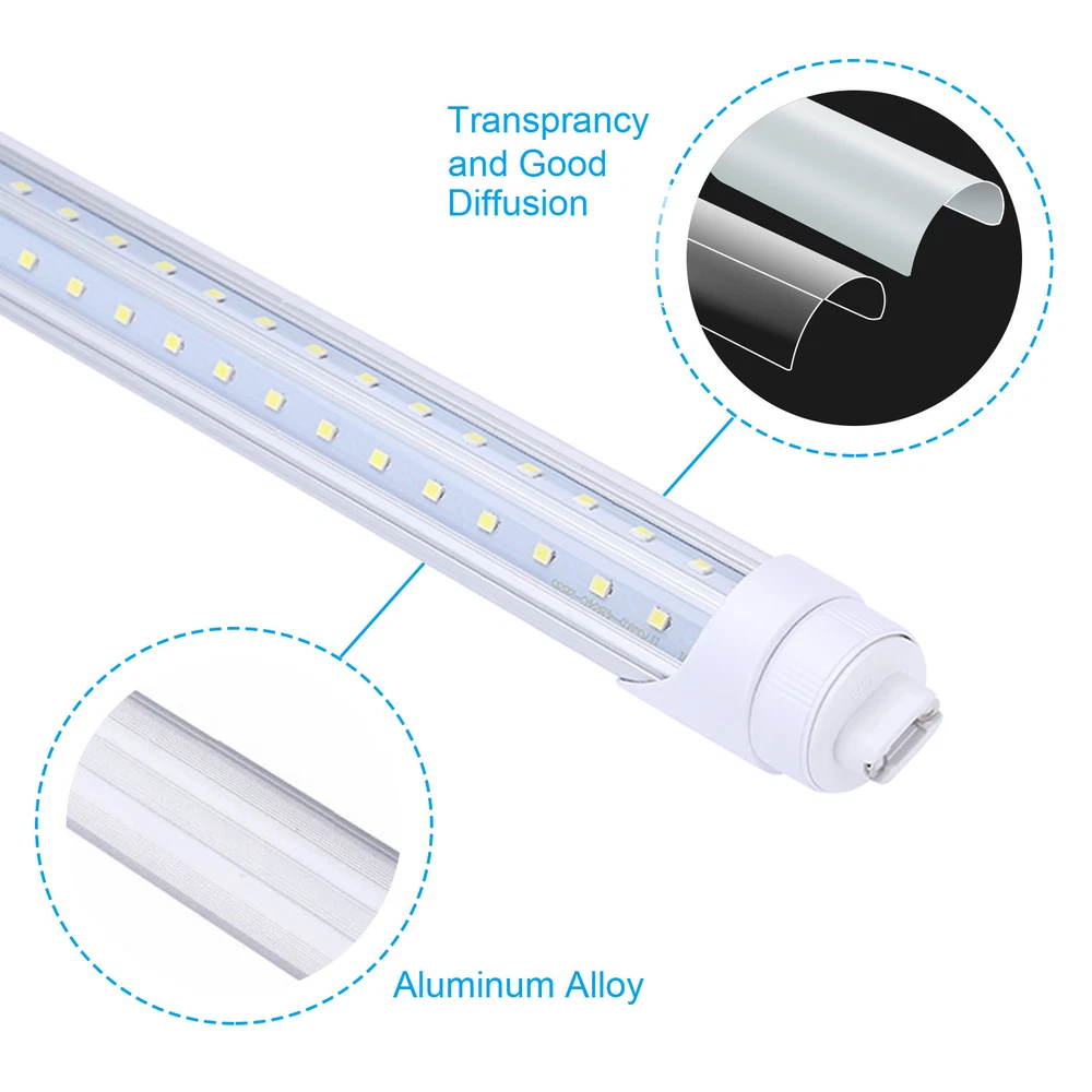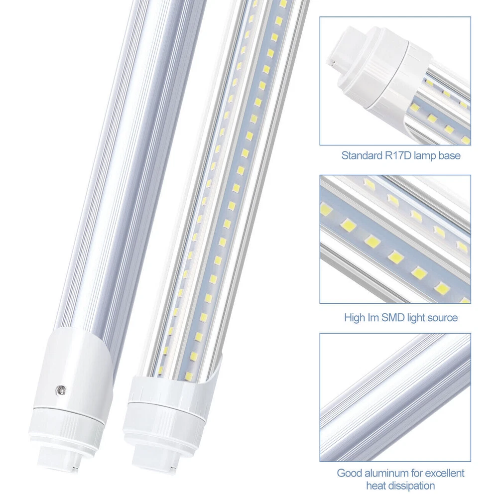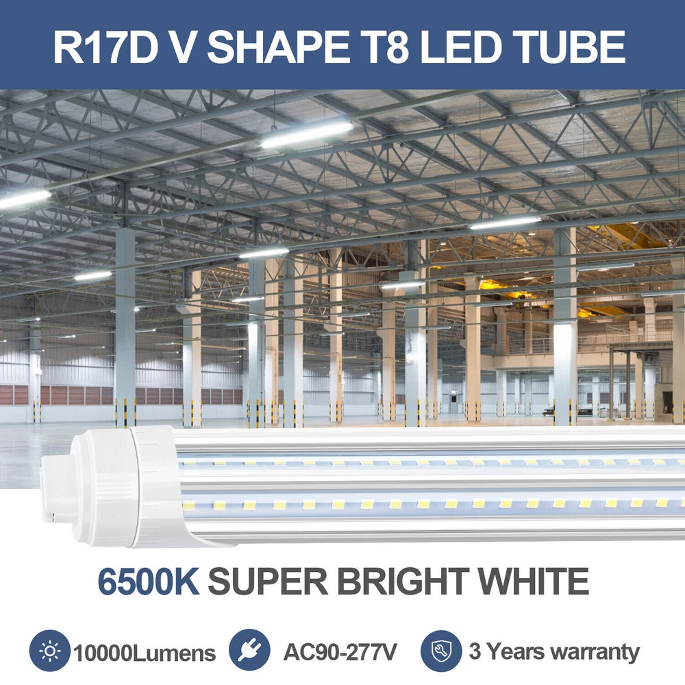 Voltage: 110V Lumens: 7800lm Light Color: Cool White Bulb Shape: T8 R17D gtin13: Does not apply UPC: Does not apply Finish: Clear Brand: Unbranded Modified Item: No Bulb Life Hours: 50,000Hours Output Voltage: 85-277V IP Rating: IP54 EC Range: A+++ - G Energy Star: A+++ Bulb Wattage: 65W Manufacturer Warranty: 3 year warranty Item Length: 8FT Model: 8FT V Shaped LED Chip Code: 2835 Type: LED Material: Aluminum Color Temperature: 6000k Custom Bundle: No Bulb Shape Code: R17D Features: Energy Saving, Lead-Free (RoHS), Heat Resistant Lighting Technology: LED MPN: Does Not Apply